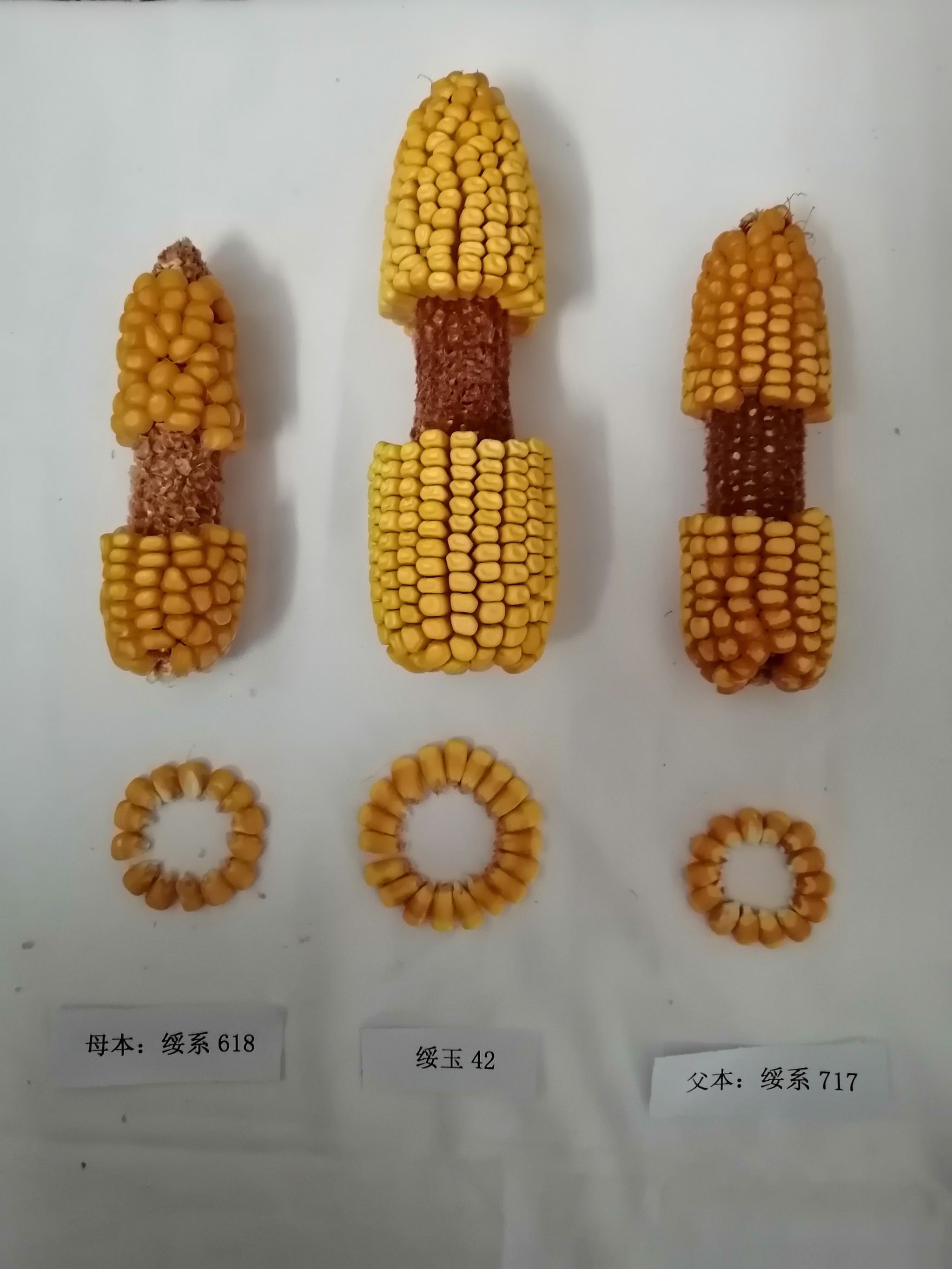 品种来源:以绥系618母本,绥系717 父本,杂交方法选育而成。特征特性:绥玉42普通玉米品种。在适应区出苗至成熟生育日数为125天左右,需≥10℃活动积温2600℃左右。该品种幼苗期第一叶鞘紫色,叶片绿色,茎绿色。株高295厘米,穗位高105厘米,成株可见 15片叶。果穗锥到筒型,穗轴红色,穗长17.4厘米,穗粗4.9厘米,穗行数16~18行,籽粒马齿型、黄色,百粒重38.1克。两年品质分析结果:容重756~766克/升,粗淀粉74.66 %~74.71%,粗蛋白10....