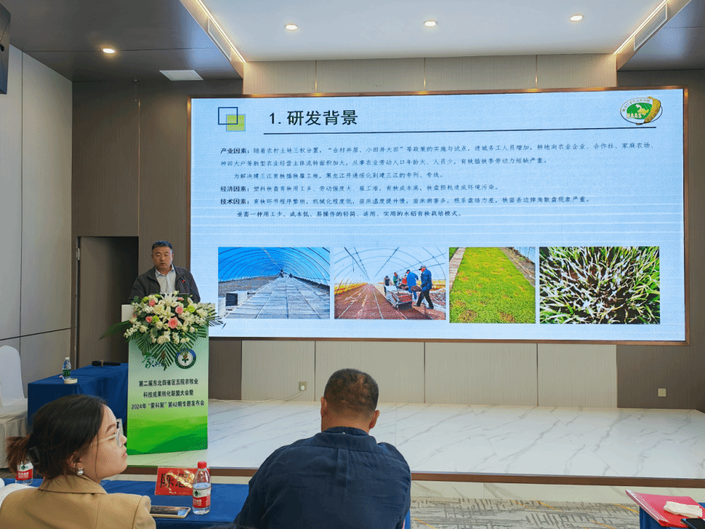 共推介科研成果16项,耕作栽培所“寒地玉米胎须高效生产及精深加工”和生物技术研究所“水稻绿色生物无盘轻简低碳育秧集成技术”2项成果进行了现场路演推介;“黑科94”“龙粳3034”“绥玉58”等14项成果参加了视频发布。