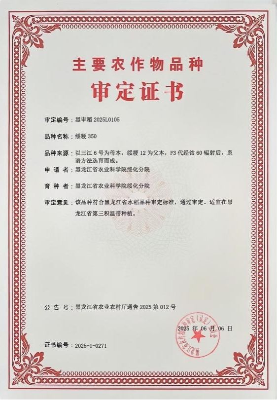 该品种符合黑龙江省水稻品种审定标准,通过审定。适宜在黑龙江省第三积温带下限种植,因其整精米率高、食味佳综合抗性好,具有广阔的市场前景和较强的推广开发价值。