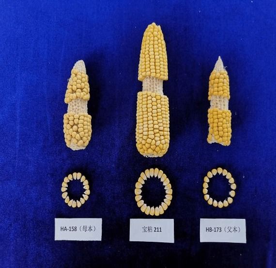 该品种于2024年通过审定,审定编号为黑审玉20240050。在适应区出苗至适宜采收期生育日数为88天左右,需≥10℃活动积温2260℃左右。该品种幼苗期第一叶鞘浅紫色,叶片绿色,茎绿色。株高275厘米,穗位高126厘米,成株可见16片叶。果穗长锥型,穗轴白色,穗长20.4厘米,穗粗5.4厘米,穗行数16~20行,籽粒糯质型、浅黄色,百粒重39.3克。两年品质分析结果:成熟籽粒粗淀粉72.30%~74.58%,支链淀粉占淀粉含量100%,食味品质86分。平均公顷产量19412.6公斤,较对照品种金糯262增产8.4%。