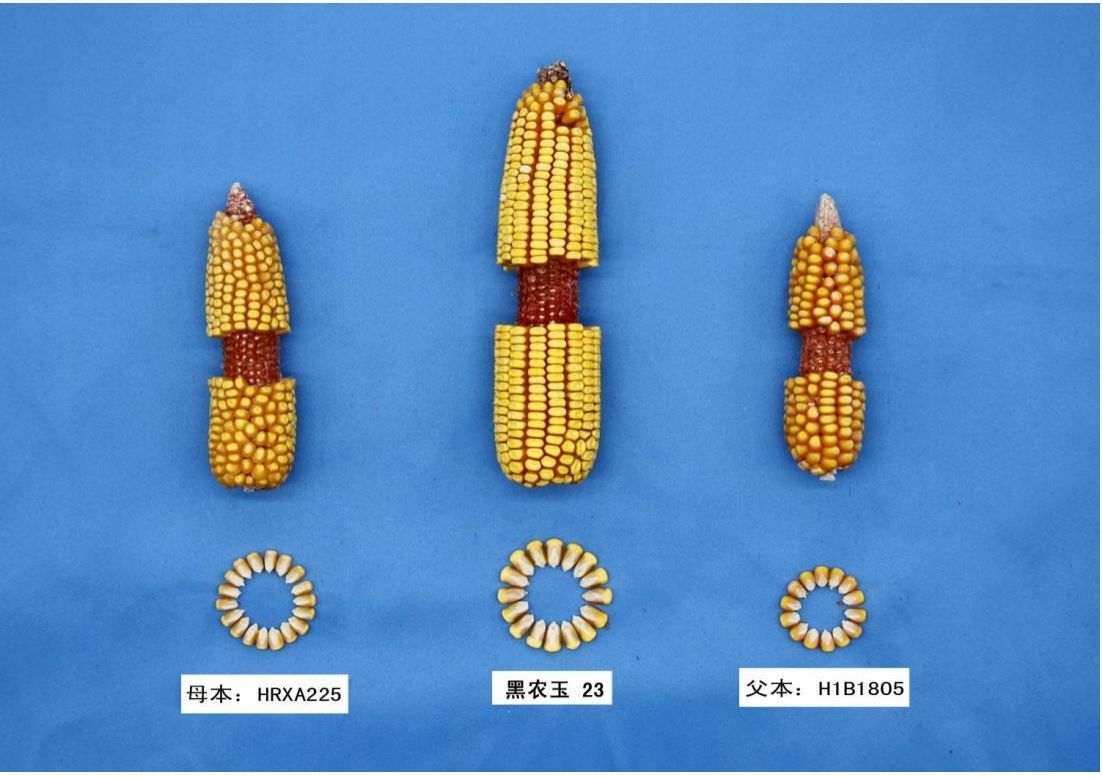 普通玉米品种。在适应区出苗至成熟生育日数为125天左右,需≥10℃活动积温2600℃左右。该品种幼苗期第一叶鞘紫色,叶片深绿色,茎绿色。雄穗一级分枝10~12个,颖壳绿色,花丝绿色,花药绿色。株高279厘米,穗位高106厘米,成株可见17片叶。果穗长筒型,穗轴红色,穗长21.2厘米,穗粗5.4厘米,穗行数16~18行,籽粒马齿型、粒色黄色,百粒重37.3克。两年品质分析结果:容重771~776克/升,粗蛋白8.32%~10.00%,粗脂肪3.70%~4.11%,粗淀粉71.16%~73.14%。2021~2022年区试试验平均公顷产量12523.6公斤,较对照品种先玉696增产5.7%;2023年生产试验平均公顷产量11957.4公斤,较对照品种先玉696增产7.0%。