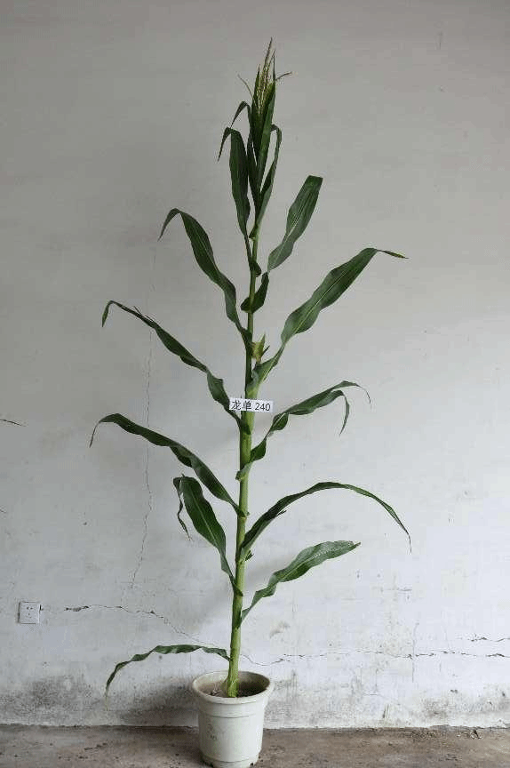 该品种处于龙科玉米科企联合体2区生产试验阶段。属普通玉米品种。在适应区出苗至成熟生育日数为125天左右,需≥10℃活动积温2600℃左右。该品种幼苗期第一叶鞘紫色,叶片深绿色,茎绿色。雄穗一级分枝6~8个,颖壳绿色,花丝绿色,花药紫色。株高301厘米,穗位高115厘米,成株可见17片叶。果穗长筒型,穗轴红色,穗长21.6厘米,穗粗5.4厘米,穗行数18~20行,籽粒马齿型、粒色黄色,百粒重36.3克。两年品质分析结果:容重757~790克/升,粗蛋白10.02%~11.59%,粗脂肪3.14%~4.33%,粗淀粉73.66%~74.84%。三年抗病接种鉴定结果:中抗至感大斑病,丝黑穗病发病率10.5%~15.2%,茎腐病发病率0.0%~2.1%,高抗至中抗镰孢穗腐病。