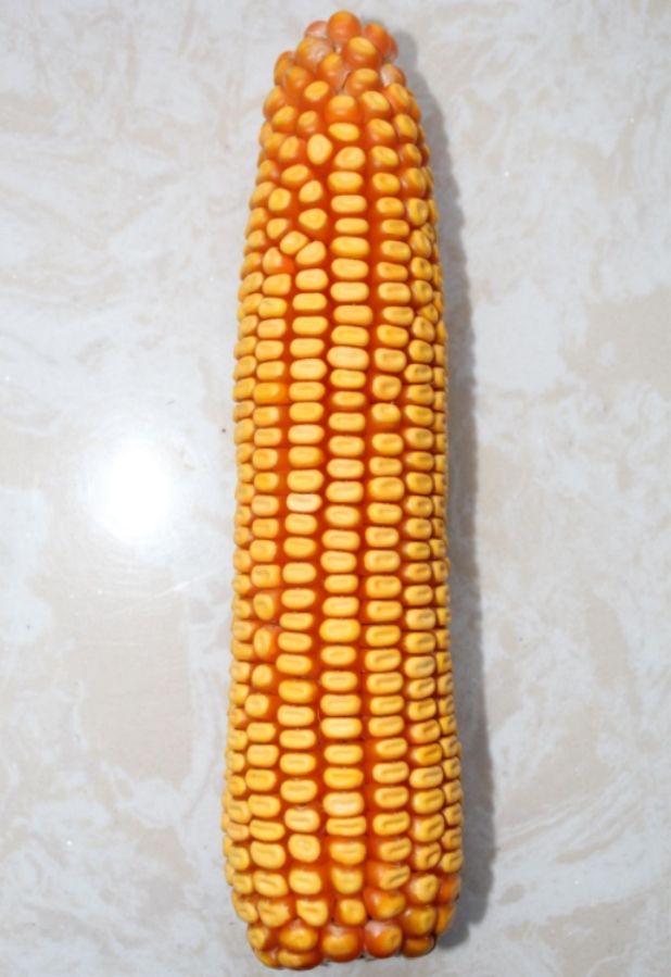 特征特性:普通品种。在适应区出苗至成熟生育日数126.5天,与对照东农264同熟期。幼苗叶鞘紫色,株型半紧凑,株高 299.2cm,穗位111.9cm,全生育期叶数 19 片。花药紫色,花丝绿色。果穗长筒型,穗长20.6cm,穗粗 5.3cm,苞叶长度短,穗行数 16~20 行,秃尖长 1.0cm,穗轴红色,籽粒黄色,马齿型,百粒重 34.7g。田间抗性:中抗大斑病,抗茎腐病,中抗穗腐病。