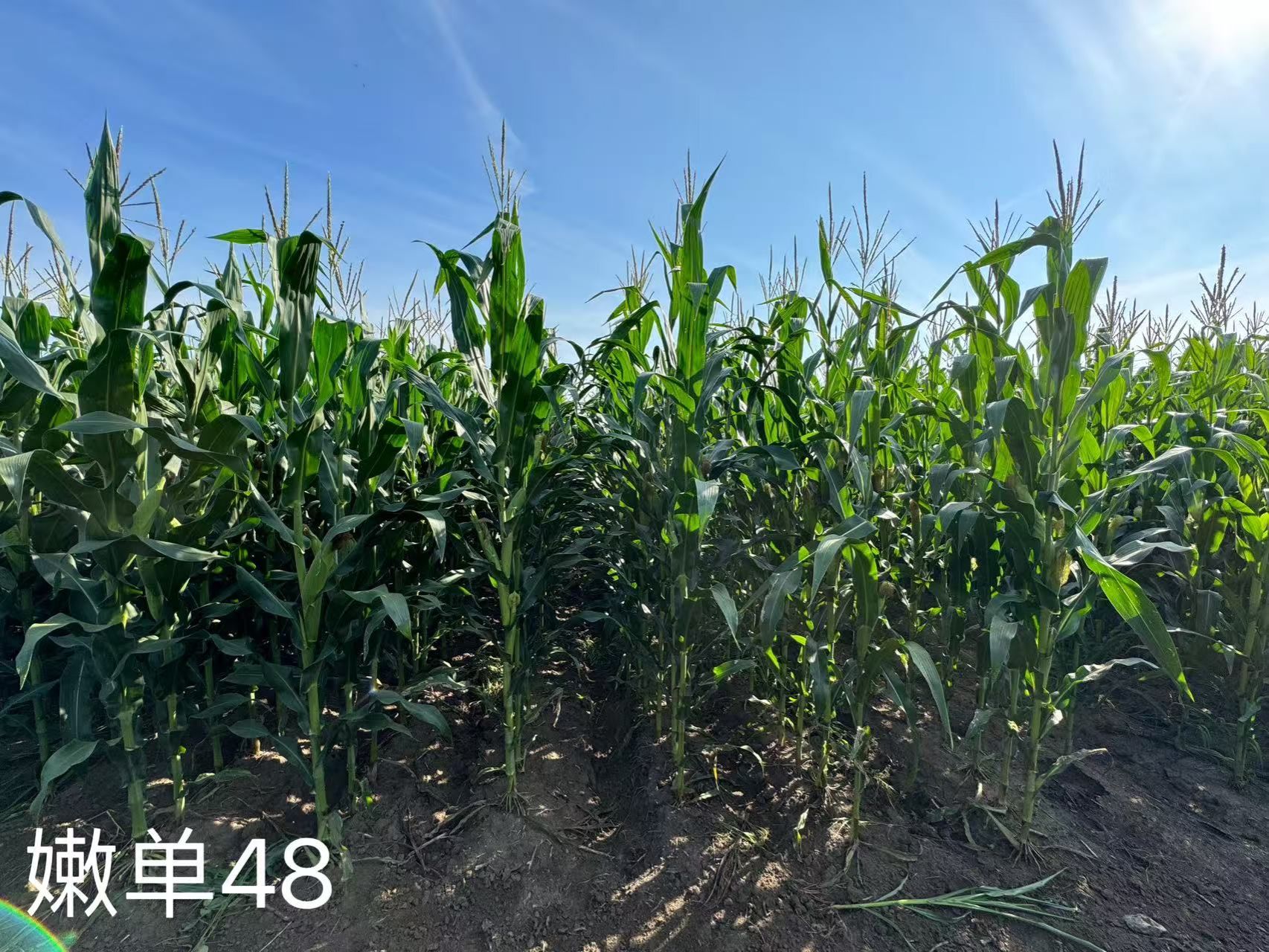 普通玉米品种。在适应区出苗至成熟生育日数为117天左右,需≥10℃活动积温2300℃左右。该品种幼苗期第一叶鞘紫色,叶片绿色,茎绿色。株高271厘米,穗位高99厘米,成株可见 14片叶。果穗长筒型,穗轴白色,穗长19.6厘米,穗粗5.0厘米,穗行数14~16行,籽粒马齿型、黄色,百粒重34.5克。两年品质分析结果:容重754~770克/升,粗淀粉74.88 %~75.00%,粗蛋白8.69%~9.27%,粗脂肪3.79%。三年抗病接种鉴定结果:中抗至感大斑病,丝黑穗病发病率12.0%~22.2%,茎腐病发病率2.3%~20.5%。 2022~2023年区域试验平均公顷产量11936.8公斤,较对照品种东农254增产9.7 %;2024年生产试验平均公顷产量12783.0公斤,较对照品种德美亚3增产9.9%。