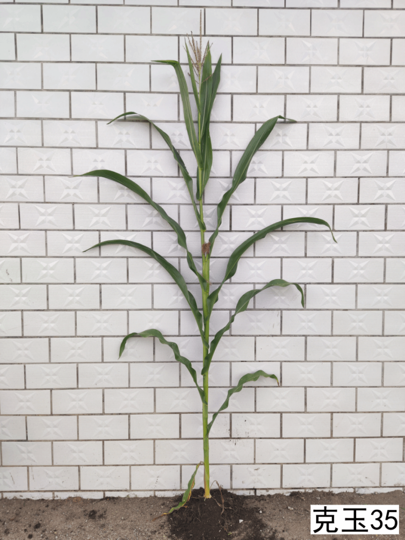 特征特性:普通玉米品种。在适应区出苗至成熟生育日数为110天左右,需≥10℃活动积温2100℃左右。该品种幼苗期第一叶鞘紫色,叶片深绿色,茎绿色。雄穗一级分枝6~10个,颖壳紫色,花药绿色,花丝紫色。株高272厘米,穗位高99厘米,成株可见12片叶。果穗长锥型,穗轴红色,穗长19.0厘米,穗粗4.6厘米,穗行数14~18行,籽粒偏马齿型、粒色黄色,百粒重32.0克。一年品质分析结果:容重758克/升,粗蛋白10.10%,粗脂肪4.52%,粗淀粉72.89%。两年抗病接种鉴定结果:中抗至感大斑病,丝黑穗病发病率0.0%~25.0%,茎腐病发病率0.0%~1.1%,抗至感镰孢穗腐病。