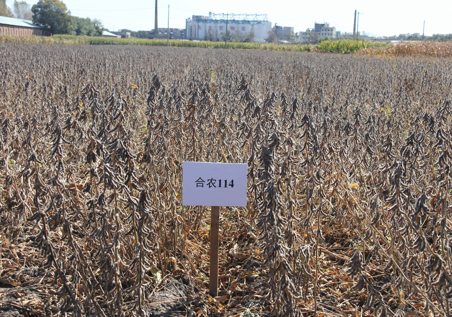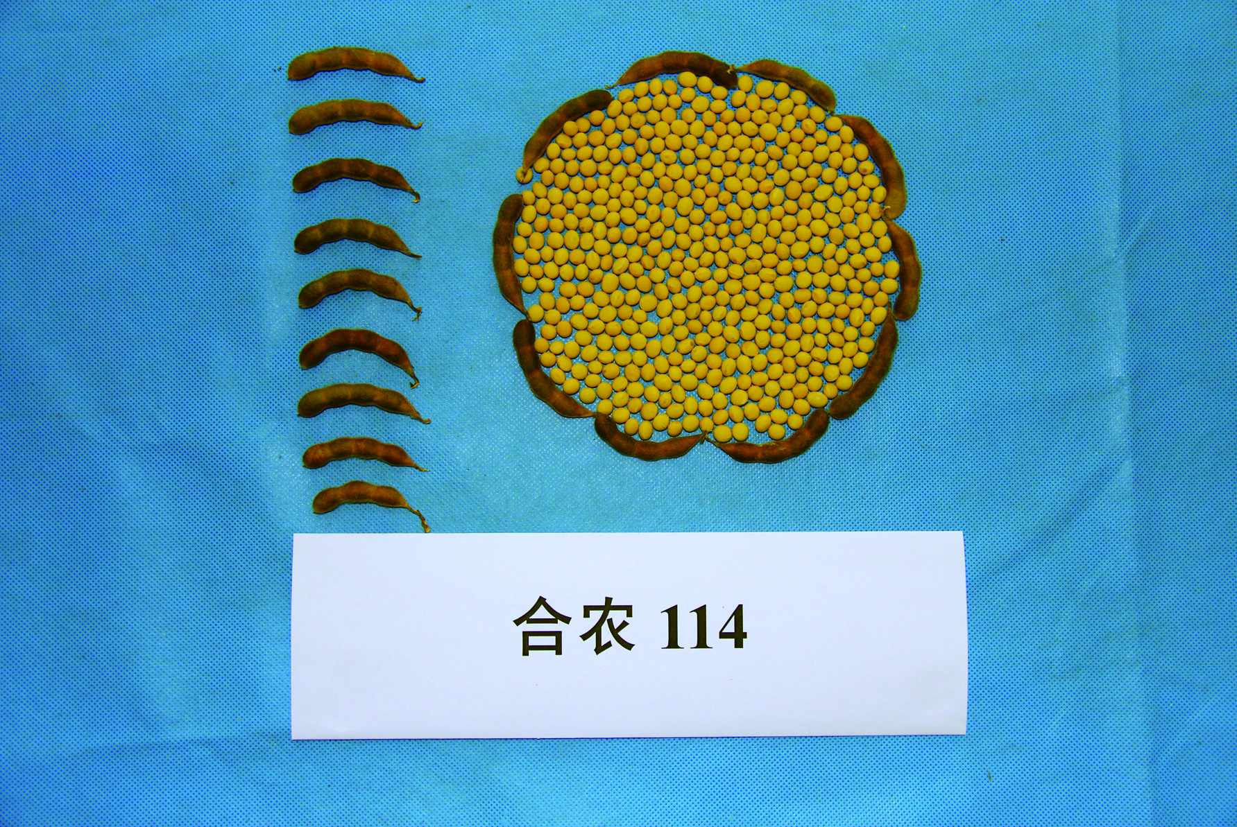 普通品种。在适应区出苗至成熟生育日数117天左右,需≥10℃活动积温2350℃左右。该品种亚有限结荚习性。株高83.2厘米左右,无分枝,紫花,尖叶,灰色茸毛,荚弯镰形,成熟时呈褐色。种子圆形,种皮黄色,种脐黄色,有光泽,百粒重18.7克。品质分析平均结果:蛋白质含量38.13%,脂肪含量21.24%。抗病接种鉴定结果:中抗灰斑病、抗花叶病毒1号株系。2016~2017年区域试验平均公亩产206.8公斤,较对照品种合交02-69增产9.6%;2017年生产试验平均亩产214.8公斤,较对照品种合交02-69增产9.3%。