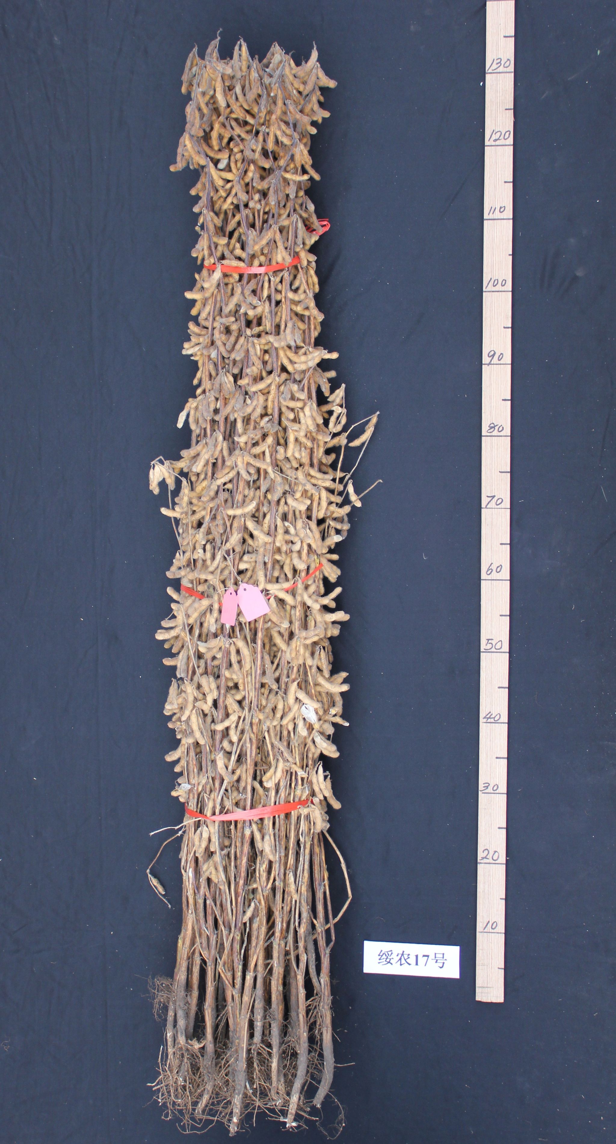 株高110cm左右,株型收敛,分枝能力较强,节间短,结荚密,多集中在中下部,三粒荚多。长叶、紫花、灰毛、无限结荚习性,荚成熟时呈草黄色,籽粒圆形,种皮黄色,脐浅黄色,百粒重21克左右,蛋白质含量38.78%,脂肪含量20.64%。中抗灰斑病,秆强不倒,适应性强。生育日数115天左右,需活动积温2350℃左右。