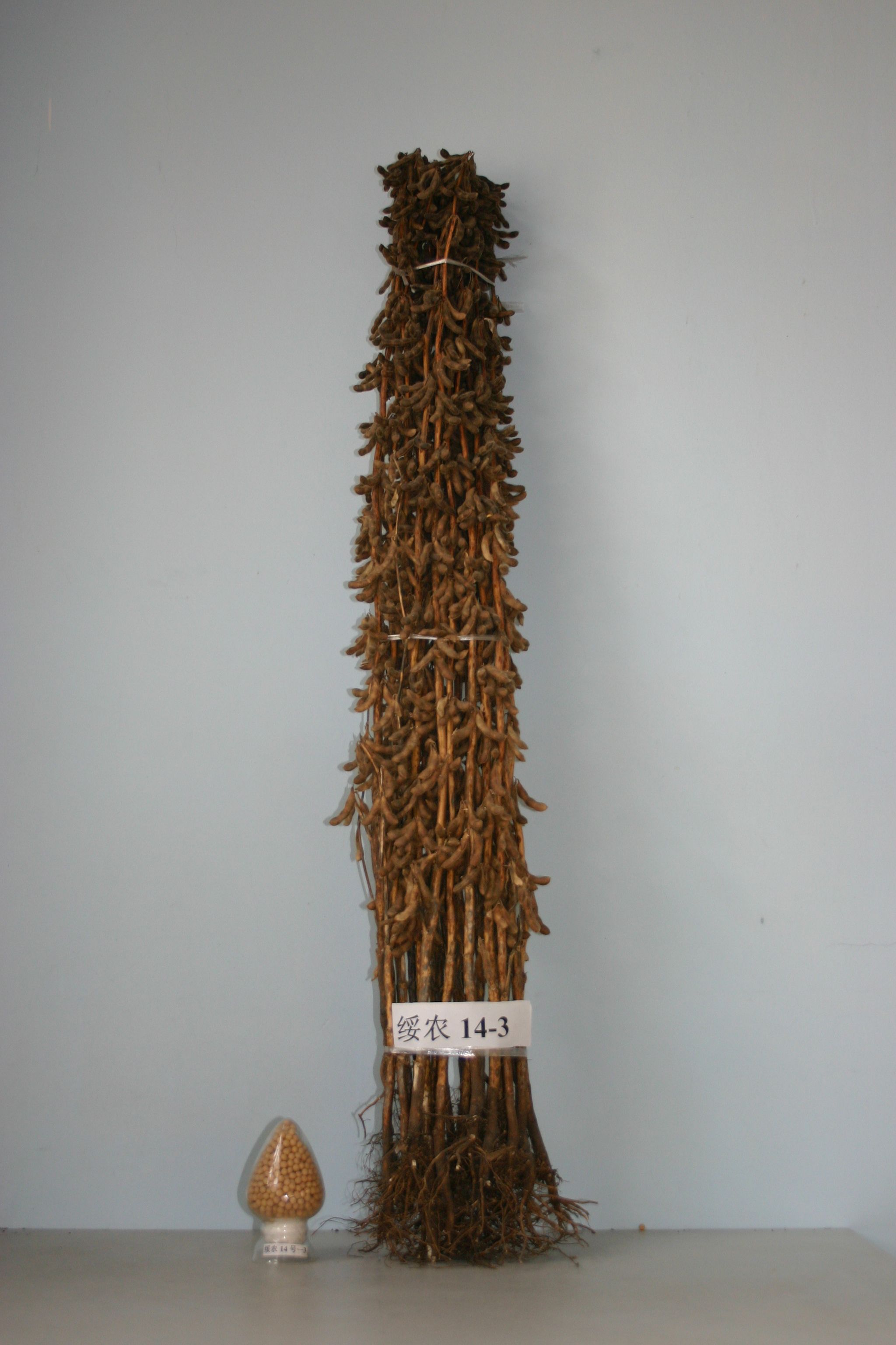 株高100厘米左右,略有分枝,主茎结荚型,节短荚密三粒荚多,顶荚丰富。幼苗拱土能力强,根系发达,秆强抗倒,中抗灰斑,耐霜霉病,适应性强。紫花、长叶、灰毛、亚有限结荚习性。籽粒圆形、种皮黄色、脐无色,百粒重21克左右,省品种科两年采样平均脂肪含量22.20%,蛋白质含量38.13%,其脂肪含量比绥农14提高近2个百分点。生育日数120天左右,需活动积温2450℃左右。