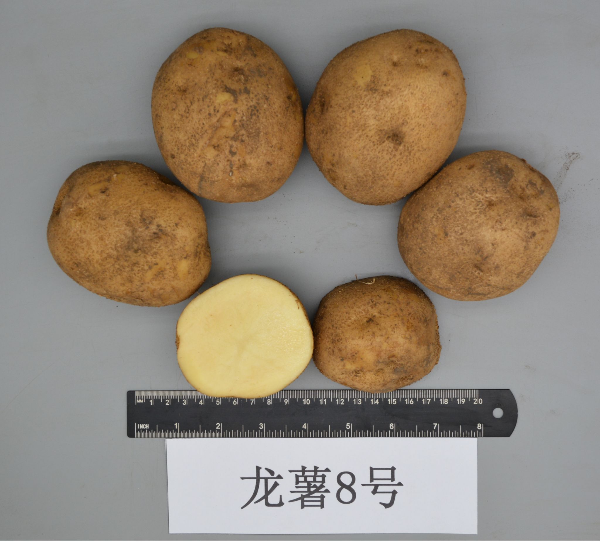 龙薯8号具有高干物质、低还原糖、适应性强等优点,该品种大块茎不空心,加工全粉产品质量优。2023年在新疆维吾尔自治区青河县进行示范种植,平均亩产4.2吨;预计年种植面积达30万亩以上。