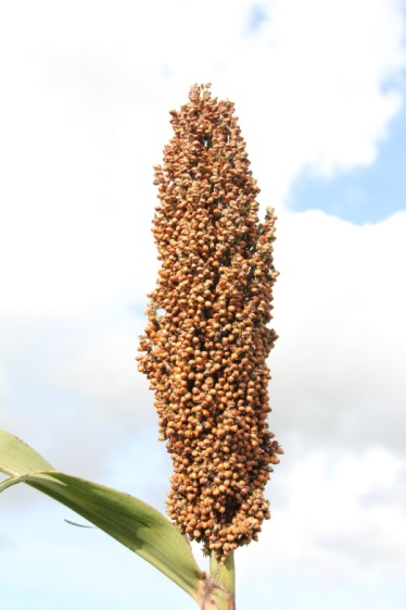 特征特性:该品种为酿造型粒用高粱杂交种。在适应区出苗至成熟生育日数105天左右,需≥10℃活动积温2200℃左右。叶片相对窄小,腊脉,叶色深绿色;株高120厘米,穗长27厘米,纺锤形中紧穗;籽粒中等大小,黑色壳,椭圆形褐色粒。千粒重26克,单穗粒重29克,着壳率少。自交结实率95%以上。酿造-总淀粉74.90%,酿造-支链淀粉85.45%,酿造-粗脂肪4.07%,酿造-单宁1.20%。中抗丝黑穗病,叶部病害2级,中抗蚜虫。