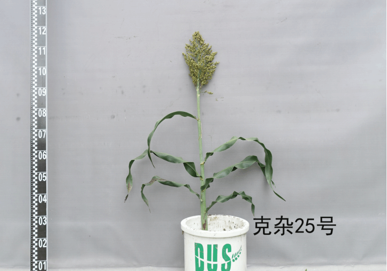 特征特性:酿造杂交种。出苗到成熟97天,活动积温2000℃以上,属早熟品种。芽鞘颜色紫色,叶脉颜色黄色。苗期长势强。根孽2个,株高106.2厘米,叶片数10片,穗型散,穗形纺锤形。穗长27.8厘米,壳色黑,粒色:橙色。穗粒重28.3克,千粒重24.0克,植株整齐度整齐,适口性差。