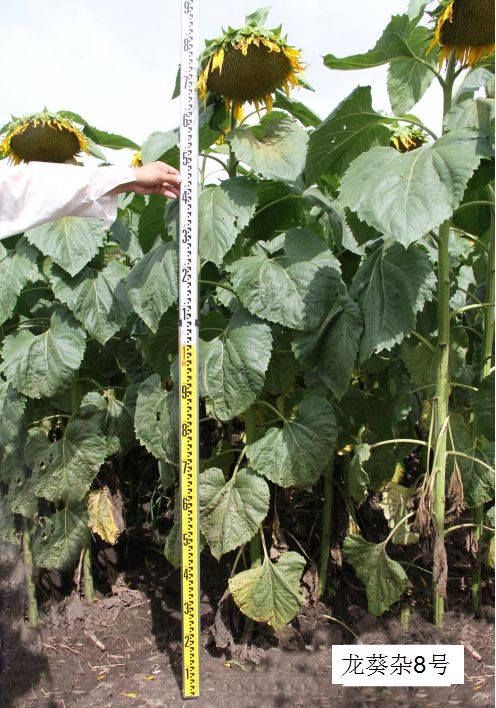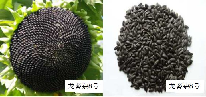 特征特性:该品种为油用型早熟杂交种,在适应区出苗至成熟生育日数94天左右,需≥10℃活动积温 2200℃左右。株高178.7 厘米,茎粗2.08 厘米,叶片数35片,无分枝,花色橙黄。花盘平展,倾斜度水平向下,花盘直径17.4厘米,结实率81.53%,百粒重5.3克,籽仁率70.18%。籽粒黑色,近圆型,排列紧密不落粒。含油率40.99%,籽仁率70.18%。