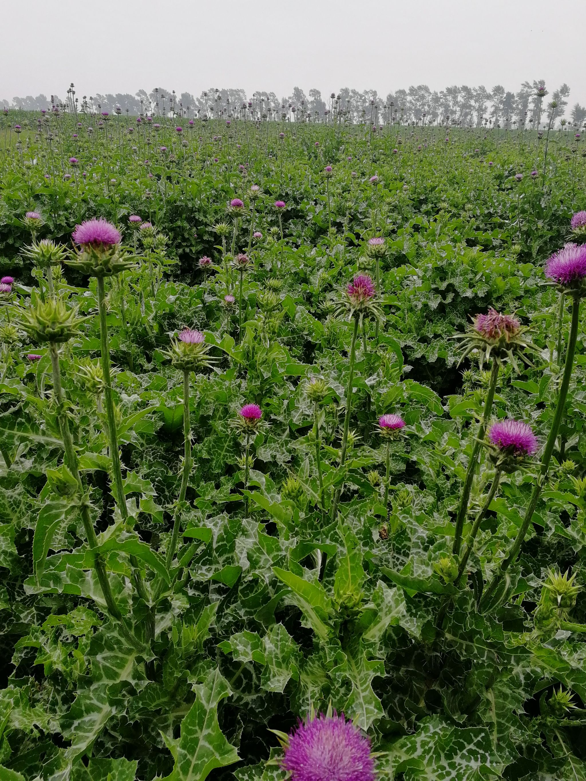龙蓟1号是具有矮壮抗倒、高产高活性、适合机收、抗逆性强等优点的水飞蓟;2021年在辽宁海城市进行示范推广中,龙蓟1号机收实测亩产量达150 kg。2018年育成至今已累积推广30万亩以上。预计今后每年推广面积可达10万亩以上。