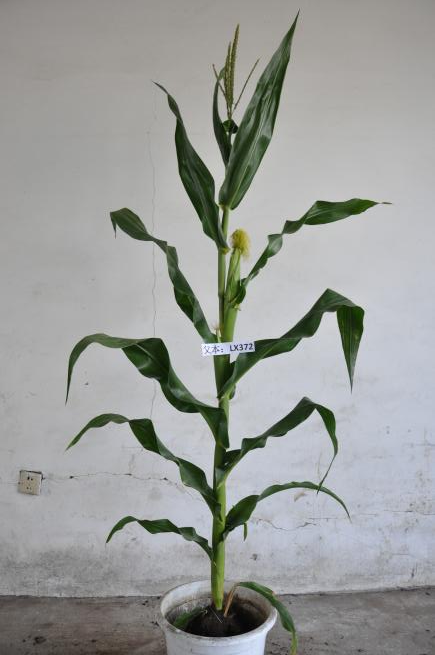 LX372是用吉林成人网站 四平所选育的四287与龙系39杂交,F1再用龙系39回交两次,经单倍体技术诱导选育出的DH系。在适应区出苗至成熟生育日数为127天左右,需≥10℃活动积温2540℃左右。该品种幼苗期第一叶鞘紫色,叶片绿色,茎绿色。雄穗一级分枝6~8个,颖壳绿色,花丝绿色,花药绿色。株高180厘米,穗位高95厘米,成株可见14片叶。果穗锥型,穗轴白色,穗长16.3厘米,穗粗4.5厘米,穗行数14~16行,籽粒偏硬粒型、粒色黄色,百粒重31.9克。
