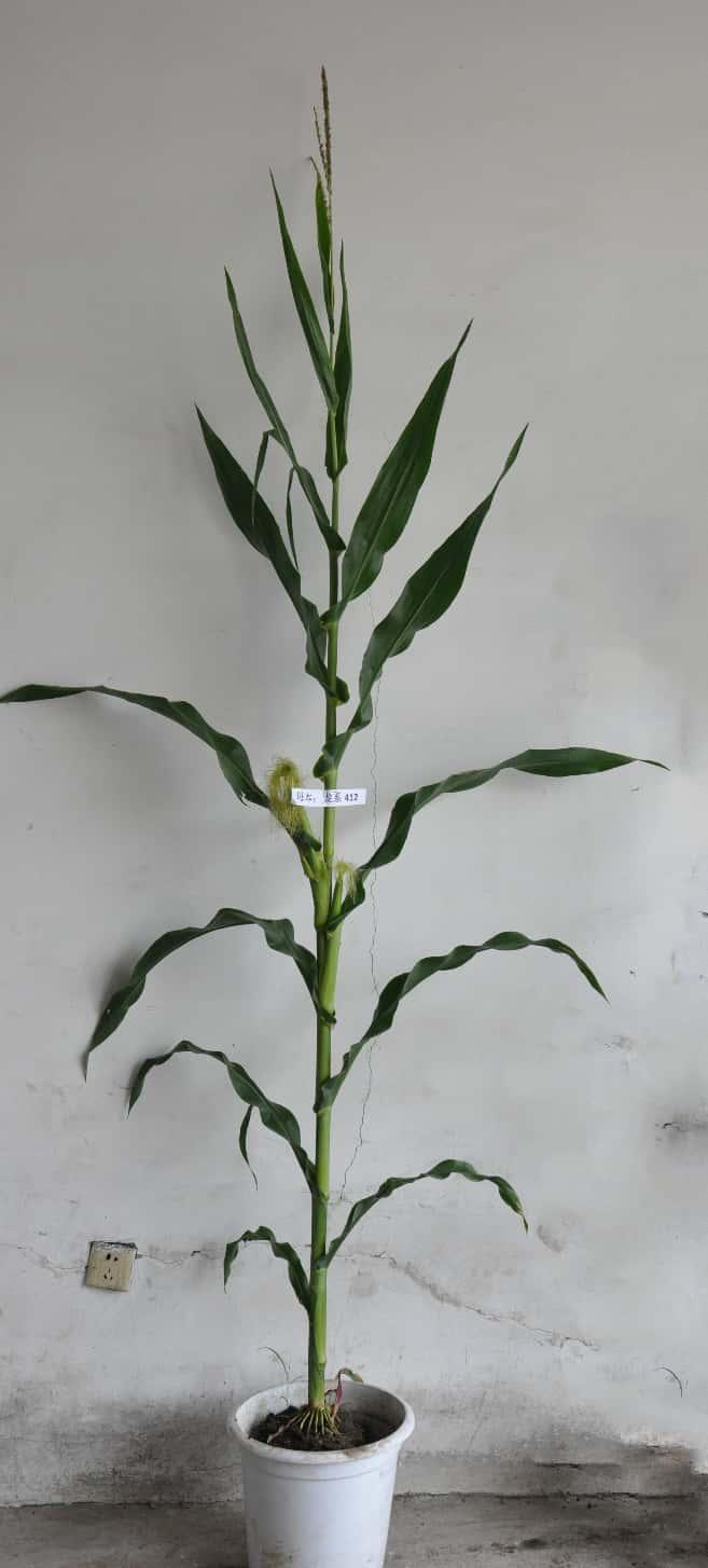 龙系412是由黑龙江成人网站 玉米研究所用来自美国先锋公司的高抗、耐密优良群体北综2号群体选出的优良单株混粉两代,又经8代高压筛选 选育而成的自交系。在哈尔滨生育日数113天左右,需活动积温2200℃左右;该品种幼苗第一叶鞘紫色,叶片绿色,茎绿色,雄穗一级分枝1~3个,颖壳浅绿色,花丝绿色,株高180厘米,穗位高75厘米,成株可见13片叶;果穗圆柱形,穗长16.4厘米,穗粗5.0厘米,穗行数12~14行,穗轴白色,籽粒马齿型,百粒重31.0克左右。