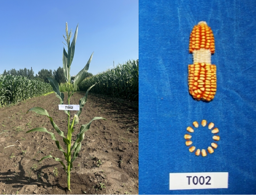 在适应区出苗至成熟生育日数为125天左右,需≥10℃活动积温2650℃左右。该品种幼苗期第一叶鞘紫色,叶片绿色,茎绿色。雄穗一级分枝7~9个,颖壳紫色,花丝紫色,花药绿色。株高190厘米,穗位高85厘米,成株可见15片叶。果穗短筒型,穗轴红色,穗长16.1厘米,穗粗4.6厘米,穗行数12~14行,籽粒偏马齿型、粒色黄色,百粒重29.3克。