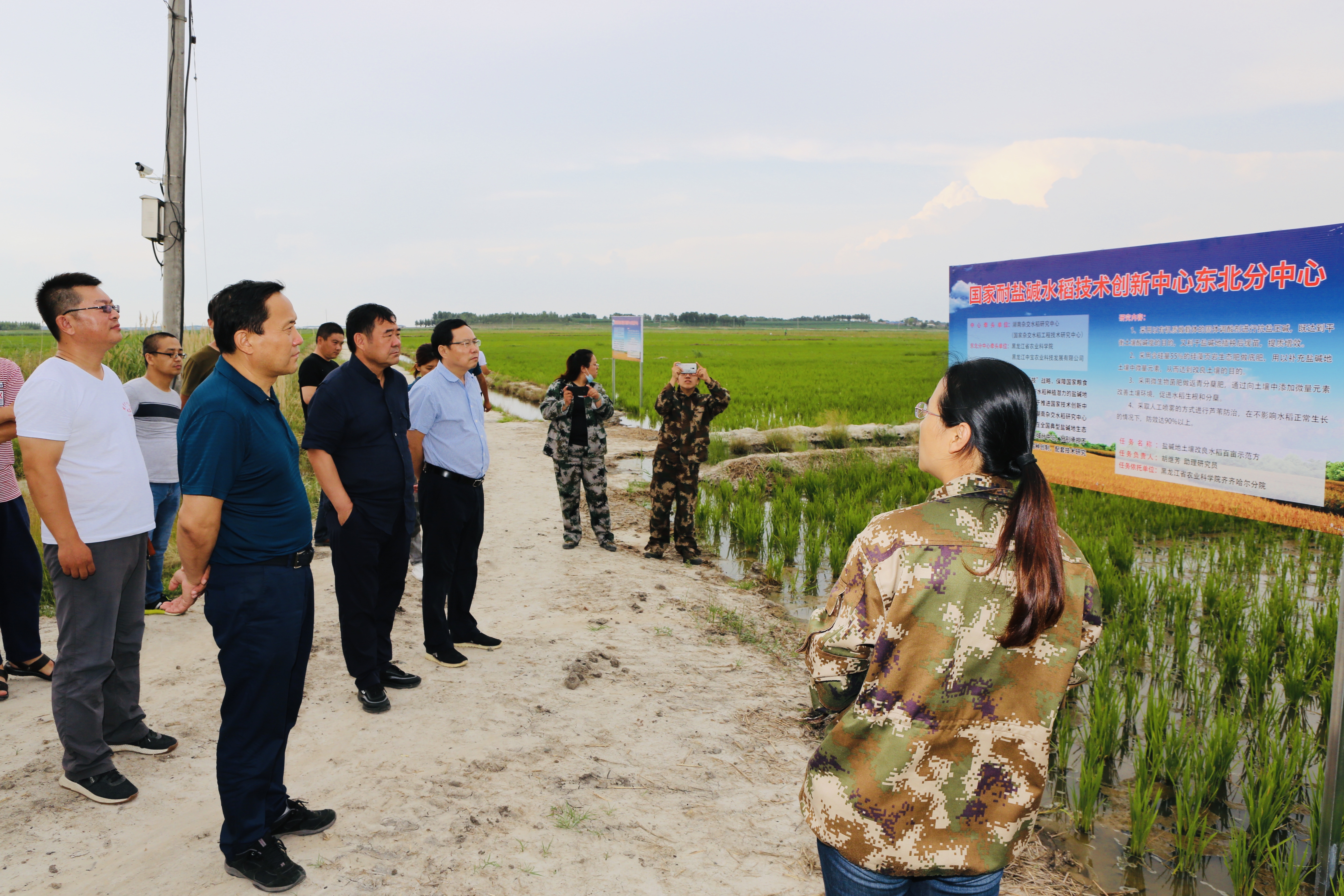 副院长来永才、党组成员省农机研究院院长石铁、省农业农村厅农田建设管理处处长刘伟及东北林业大学博士生导师李立新等一行到国家耐盐碱水稻技术创新中心东北分中心大庆市肇源县耐盐碱水稻种植示范基地考察调研。