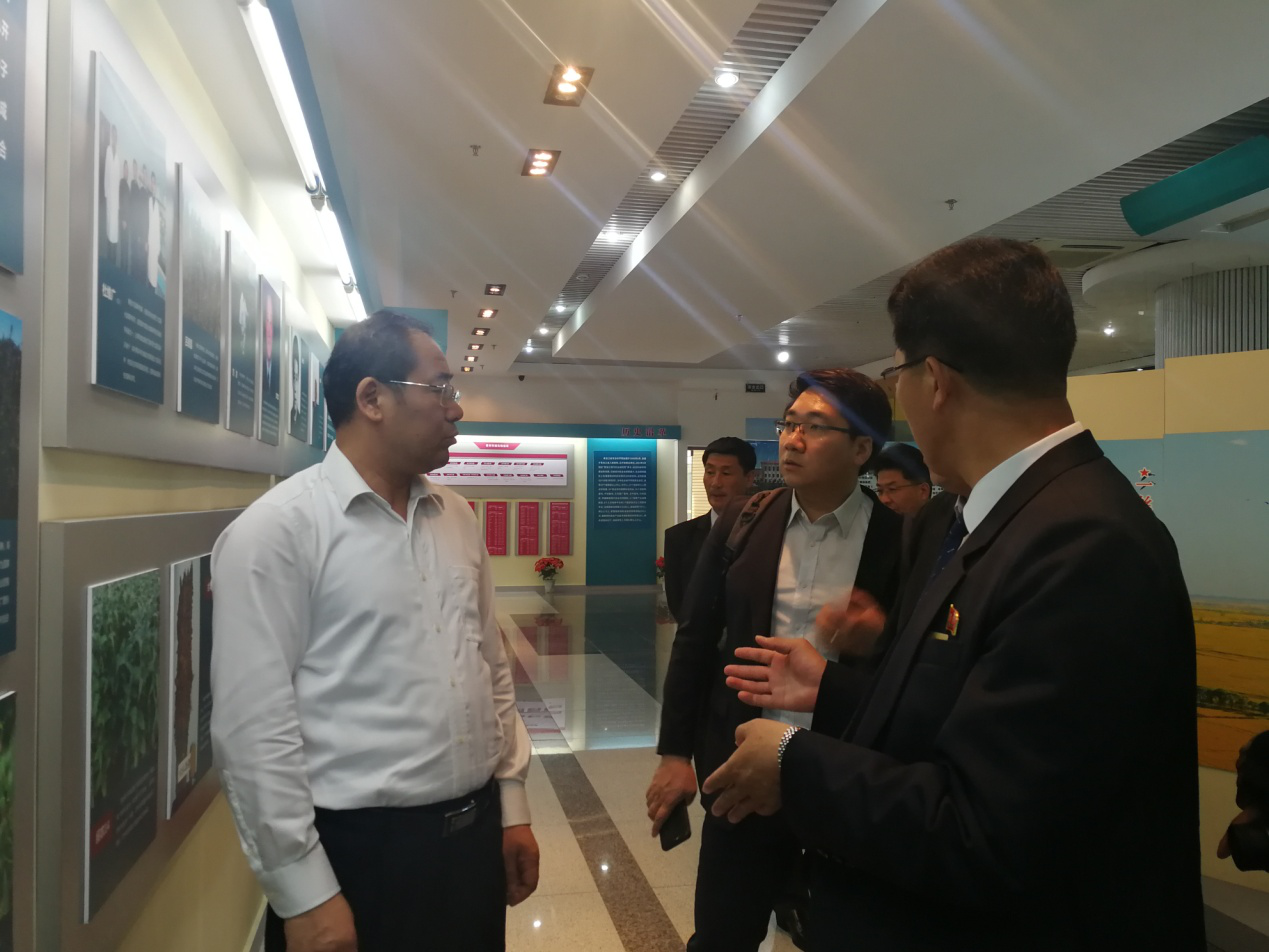 成人网站 院长李文华对吴京锡委员长率团来访表示欢迎,并在黑龙江农业科技展览馆对成人网站 科技创新成果、科技平台建设、科研团队实力、对外交流合作、科技成果推广与转化、科技信息服务等方面进行了详细介绍。