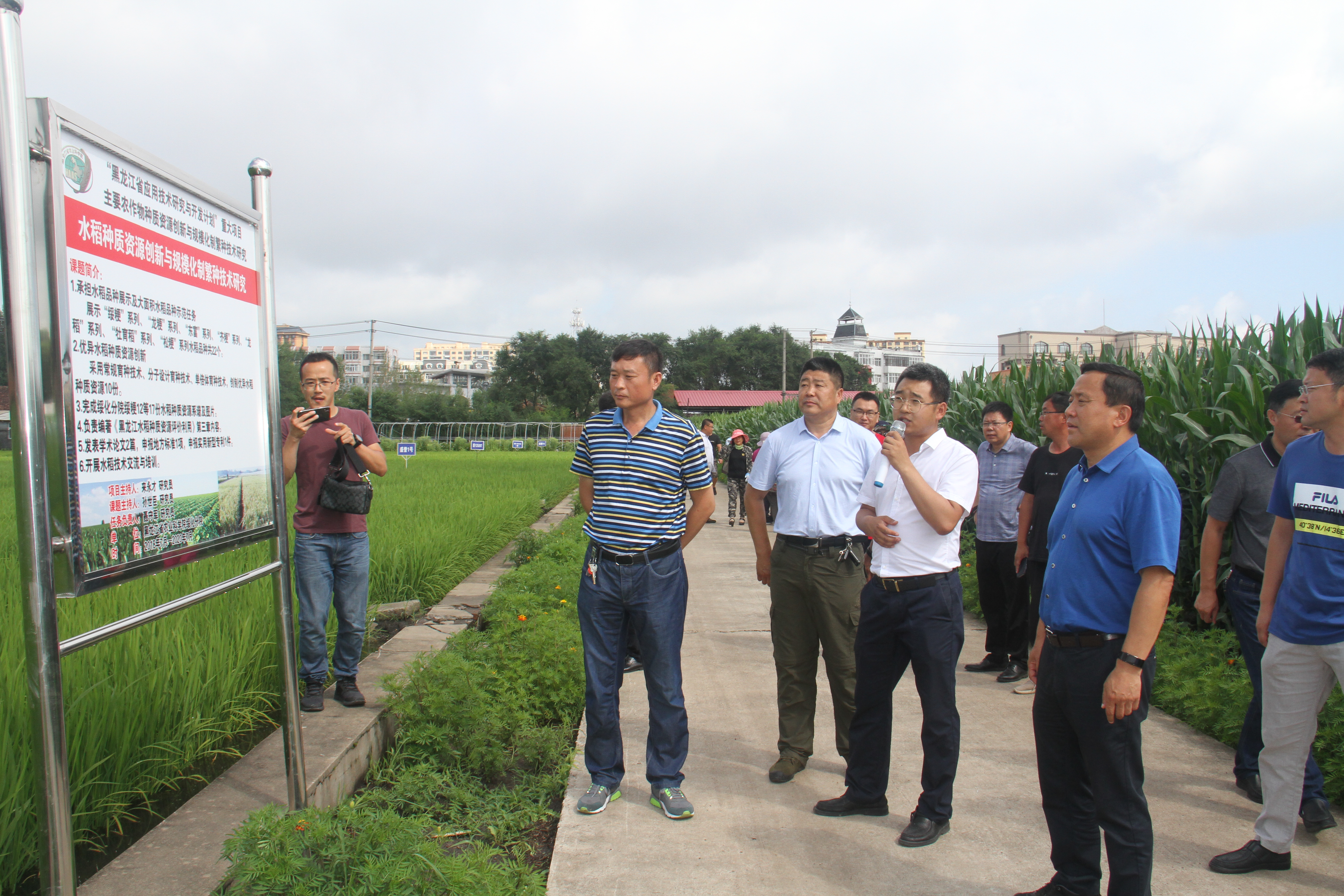 7月17日,黑龙江省应用技术研究与开发计划重大项目“主要农作物种质资源创新与规模化制繁种技术研究”项目主持人、成人网站 副院长来永才研究员率项目组相关人员到成人网站 绥化分院,对2019年项目在绥化区的执行情况进行了中期检查。来自成人网站 耕作栽培所、玉米所、大豆所、信息中心、齐齐哈尔分院、大庆分院、佳木斯分院、克山分院等9家项目实施单位的18名骨干成员参加了田检。