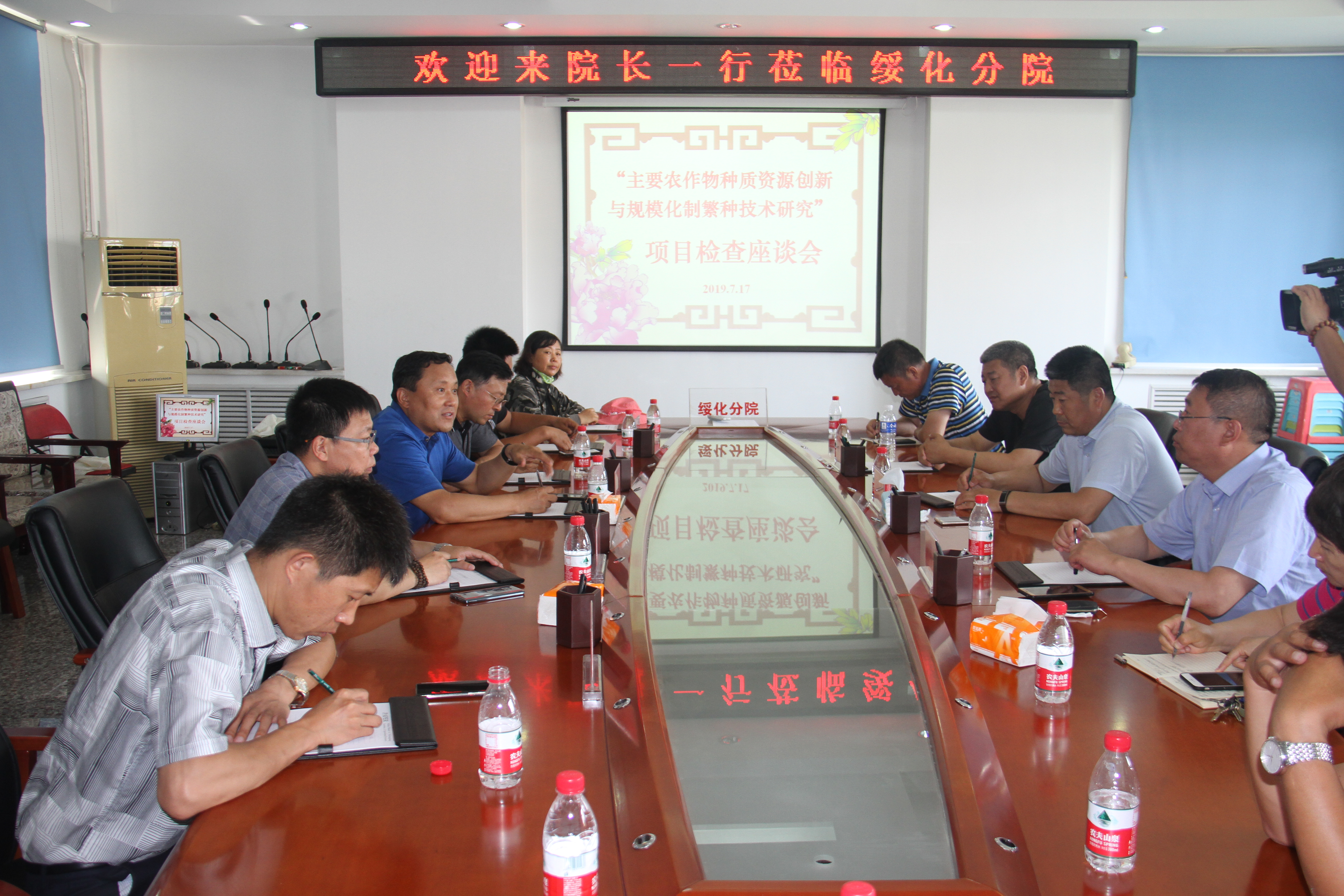 田间检查后,与会人员与绥化分院全体科研人员就项目下一步工作进行了座谈。大家一致认为,要紧密围绕主要作物育种发展重大技术需求开展种质创新及制繁种技术研究,为我省农业发展提供科技支撑。要充分利用省重大项目平台加强院内科研团队间的学术交流,在农业科技创新中共同形成合力,实现成人网站 科研能力大提升。同时,就人才培养及激励机制做了深入交流。各作物负责人还就项目实施中存在的问题进行了说明,提出了具体的工作方案。来永才研究员在总结时对此次绥化项目中期田间检查工作及完成情况给予了充分肯定,并对项目后期计划方案提出了严格要求,希望各项目参加单位保质保量完成任务。他强调,要从战略发展高度完成好本项目,同时要多出成果,更重要的是通过本项目培养锻炼一支过硬农业科技人才队伍。