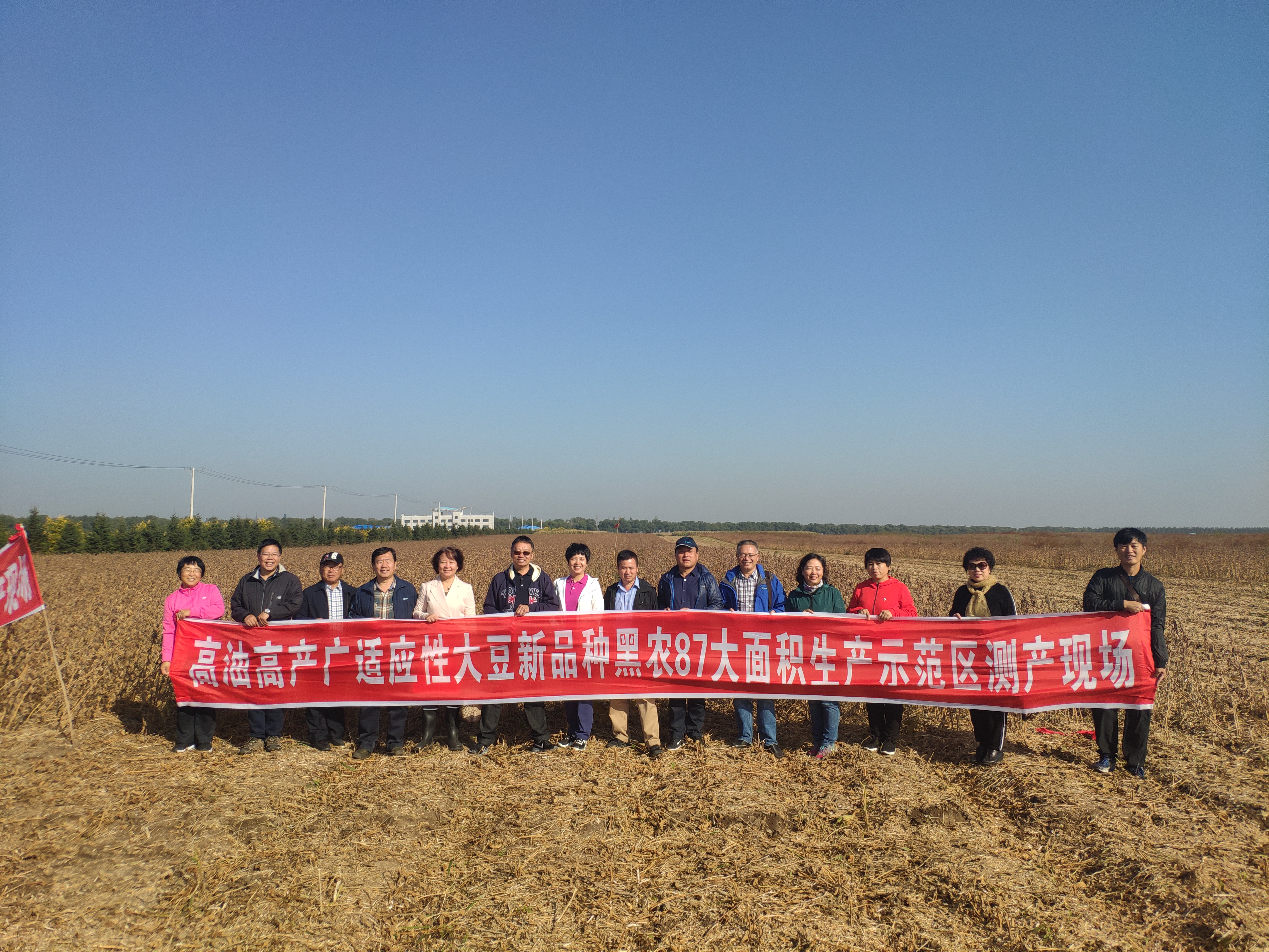 9月26日,双城区东跃现代农机专业合作社大豆田中人头攒动,随着联合收割机的转动,由成人网站 大豆所、耕作栽培所共同举办的大豆新品种“黑农87”实收测产现场会正在进行。经过品种示范区GPS面积定位、联合收割机实收大豆脱粒和称重、数据汇总等一系列科学测产程序,专家组宣布了测产结果:“黑农87”示范面积1800亩,平均亩产250.87kg。