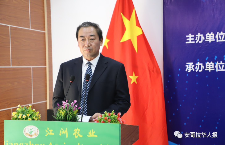 龚韬大使在致辞中表示,农业合作是当前中非合作的重点领域之一,安哥拉率先同中国签署落实“八大行动”合作文件,并陆续开展包括农业在内的各领域务实合作,两国农业合作前景十分广阔,中方愿同安方充分挖掘农业领域合作潜力,进一步支持安农业现代化和经济多元化。在提高农业生产力和自然科技领域方面,中国愿意分享经验并提供支持。相信两国的合作成果除了会深化中安友谊关系之外,还将使安哥拉人民受益。同时,龚韬大使向来安执行培训任务的黑龙江成人网站 团队致以问候。