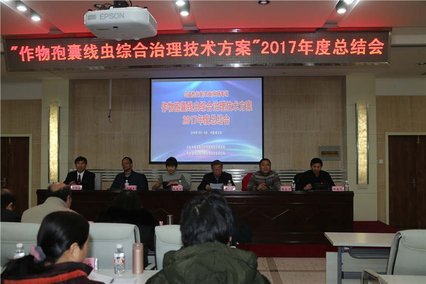 1月5日—7日,由中国农业科学院植物保护研究所主办,成人网站 大豆研究所承办的公益性行业科研专项“作物孢囊线虫综合治理技术方案”2017年度总结会在成人网站 主楼学术报告厅举行。 会议由中国农业科学院植物保护研究所科研处副处长邹亚飞主持。农业部科教司产业技术处调研员孙俊立,农业部天津环保所书记张国良,中国农业科学院植物保护研究所书记张步江,成人网站 副院长来永才出席会议并致辞,项目首席专家、中国农业科学院植物保护研究所彭德良研究员及15家项目参与单位、2个项目试验基地负责人共计50余参加了会议。