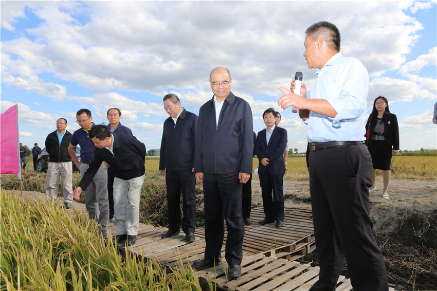 9月11日-12日,中国科学院北方粳稻分子育种联合研究中心2017年度现场会及学术交流会在哈尔滨召开。中国科学院副院长相里斌、中国科学院院士李家洋率中科院北京基因组研究所所长薛勇彪、遗传与发育生物学研究所所长杨维才、植物研究所书记种康、长春分院院长王利祥、遗传与发育生物学研究所党委书记胥伟华及姚善国研究、程祝宽研究员、储成才研究员等20余位领导和专家到成人网站 黑龙江现代农业园区实地考察了中国科学院先导专项“分子模块设计育种创新体系”成果在黑龙江省的落地情况。黑龙江省副省长胡亚枫,省科技厅厅长杨廷双,省院士办主任朱琳,中国科学院北方粳稻分子育种联合研究中心主任、成人网站 院长李文华,党组书记刘娣、副院长来永才全程陪同考察、交流。 11日晚,黑龙江省委副书记、省长陆昊在哈尔滨会见了中国科学院副院长相里斌一行。陆昊省长对相里斌副院长一行来哈推动省院合作表示欢迎,对中科院长期以来支持黑龙江省发展表示感谢。陆昊省长说,育种是国家农业发展重要战略,黑龙江作为农业大省应有更大的作为,双方合作要把国家战略目标和黑龙江省农业产业发展需求相结合。双方共建北方粳稻分子育种联合研究中心以来,取得了很多合作成果,希望认真总结过去取得的成绩和存在的差距,进一步确定新的合作目标,制定务实合作举措,省政府会积极给予支持。相里斌副院长表示,中科院将落实好省院共建协议,不断拓展合作空间,提升合作水平,加快成果转化,实现共同发展。