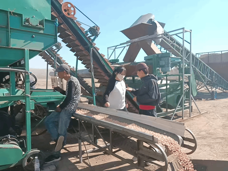 随后,服务团队来到茂兴镇瑞丰花生合作社。花生收获后经过初步抖土、晾晒,现阶段正在进行脱壳处理。当地合作社和企业只进行初加工,花生脱壳后直接销售给客户,由客户进一步加工成其他花生制品,这也是合作社、企业和农户除花生种植之外的另一种收益方式。科研人员建议,农户也可以通过炒货、盐渍等技术难度较小的加工方式,增加一份收入。