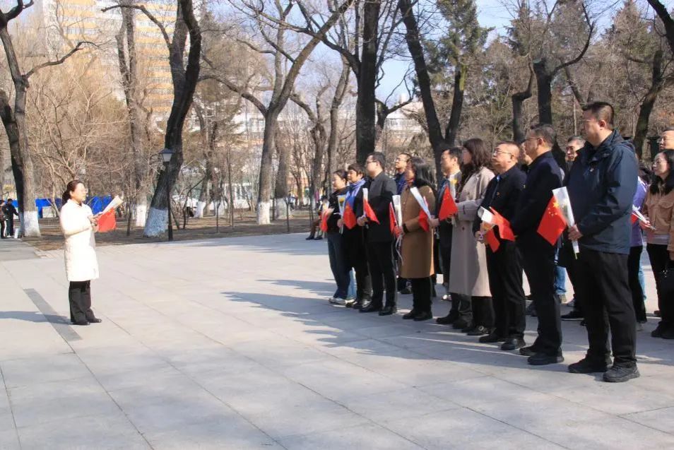 李兆麟将军墓前松柏苍翠、庄严肃穆,全体党员干部整齐列队,肃立默哀,向这位著名抗日联军将领和民族解放事业英勇献身的革命先驱致以深切哀思。随后,党员同志们缓步上前敬献花篮,献上手中白菊,用鲜花寄托对先烈的崇敬与追忆。革命先烈的英勇事迹与奉献精神,激励着每一位党员坚定理想信念,厚植“为农服务、守护舌尖安全”的初心使命。