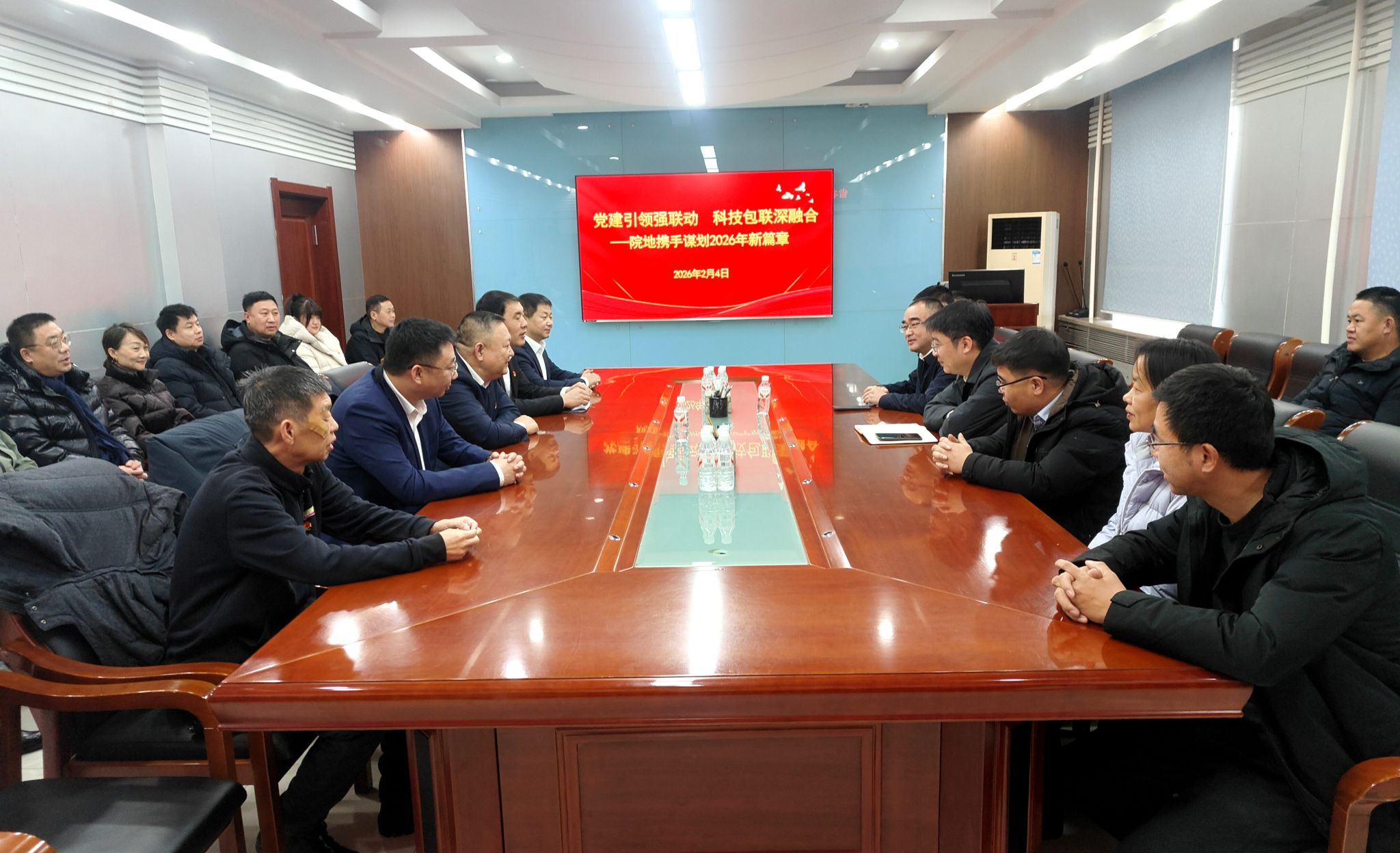 此次活动分为主题党日学习交流、联欢文艺活动两个环节,流程紧凑有序、内容丰富务实。活动第一阶段,两家单位班子成员、中层干部集中收看了党的二十届四中全会精神解读专题讲座《阔步新征程建功新时代》,围绕“党建引领强联动、科技包联深融合”主题开展学习交流,畅谈科技包联的经验做法、难点突破与心得体会。双方聚焦优化专家服务模式、提升科技成果转化效率、破解基层农业生产痛点等议题深入研讨,既总结了上年协作亮点成效,也明确了新一年院地协同、科技兴农的发力方向,进一步凝聚起“党建引领、科研赋能、推广落地、共建共赢”的思想共识,为后续深化合作奠定坚实基础。