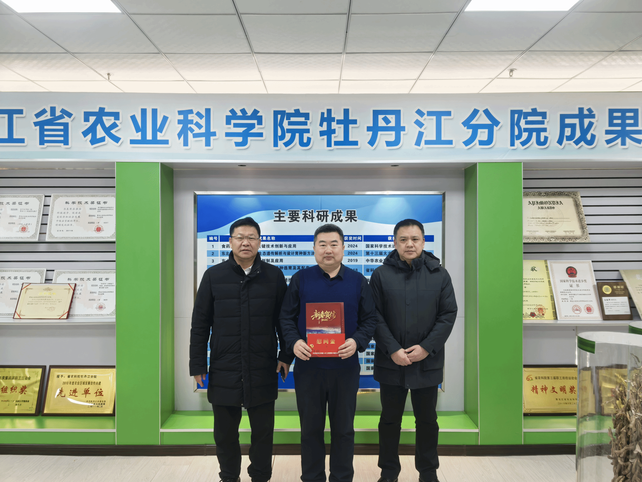 2026年2月11日,牡丹江市副市长李传柱、市委组织部部务委员侯雷一行专程来到成人网站 牡丹江分院,慰问食用菌研究所所长、龙江楷模、国家科技进步一等奖获得者王延锋,向坚守科研一线的农业科技工作者致以新春祝福与诚挚问候。