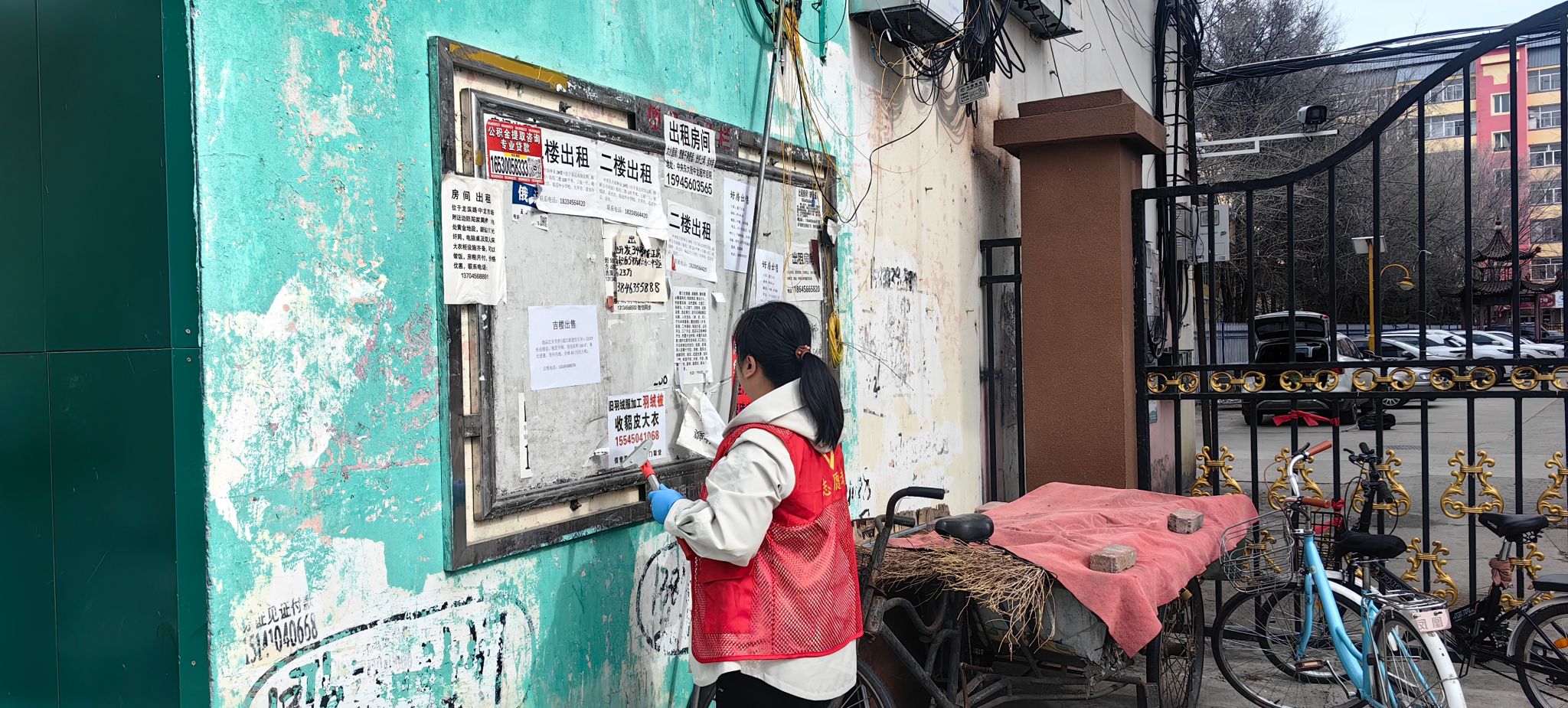 整治现场,党员干部们充分发扬不怕脏、不怕累的奉献精神,分工协作、干劲十足,聚焦小区内各类环境乱象开展全面清理。大家手持清洁工具,重点对小区公共区域环境卫生进行彻底清扫,清理路面垃圾、卫生死角;针对楼道、墙面随意张贴的小广告,逐一进行铲除清理;同时,对楼道内乱堆乱放的杂物、闲置物品进行集中规整清运,全力消除安全隐患,打通楼道消防通道。