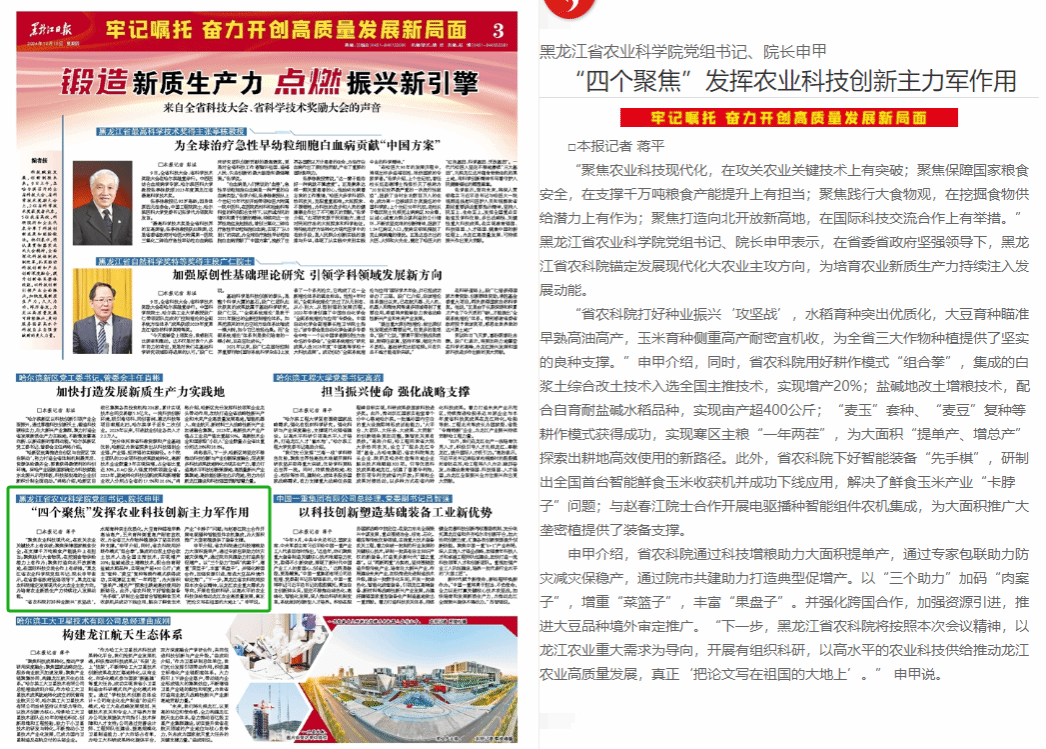 《黑龙江日报》刊发申甲发言