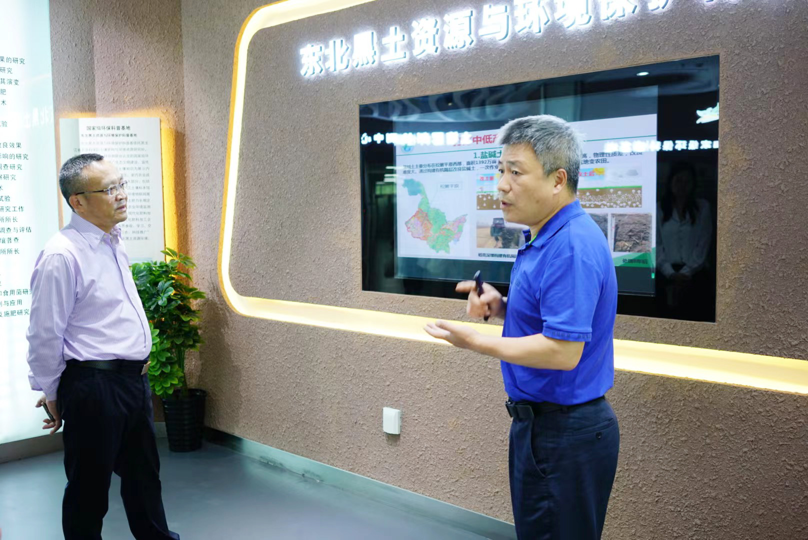 在黑土保护利用研究院,唐咸来一行听取了黑土保护利用研究院院长刘杰关于成人网站 承担的黑土保护利用、中低产田改良、植物营养与肥料、农业环境、农业微生物以及农村能源领域科技创新与技术服务等领域工作的介绍,并参观了黑土科普标本馆及土壤标本保存库。