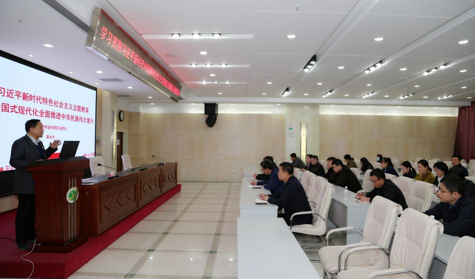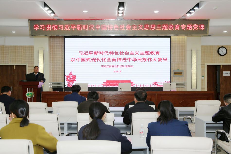 为深入贯彻落实习近平总书记在主题教育工作会议上的重要讲话精神和《中共中央关于在全党深入开展学习贯彻习近平新时代中国特色社会主义思想主题教育的意见》《中共黑龙江省委关于深入开展学习贯彻习近平新时代中国特色社会主义思想主题教育的实施方案》,按照院党组部署,结合成人网站 实施方案要求,4月18日下午,院党组成员、副院长来永才在主楼一楼学术报告厅为分管的院科研处、财务处和成果产业处的全体党员做了题为《以中国式现代化全面推进中华民族伟大复兴》的专题党课。