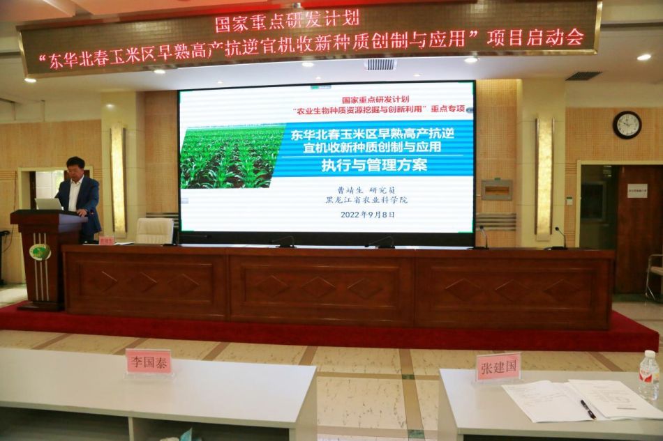 9月8日,国家重点研发计划 “农业生物种质资源挖掘与创新利用”重点专项 “东华北春玉米区早熟高产抗逆宜机收新种质创制与应用” 项目在成人网站 召开启动会。科技部中国农村技术开发中心、黑龙江省科技厅、项目承担单位领导以及领域内知名专家学者、项目骨干成员共计60余人通过“线上+线下”的形式相聚。启动会由项目负责人、成人网站 曹靖生研究员主持。