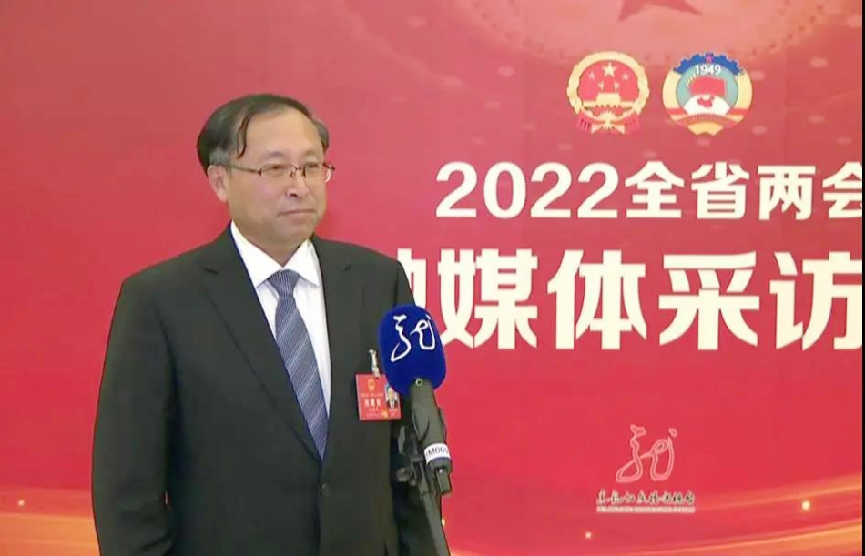 图为潘国君代表在代表委员通道接受黑龙江电视台采访(摄影:黑龙江电视台 孙鹏)