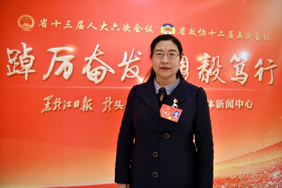 图为刘娣代表在《黑龙江日报》采访区接受采访(摄影:龙头新闻 宋淼)
