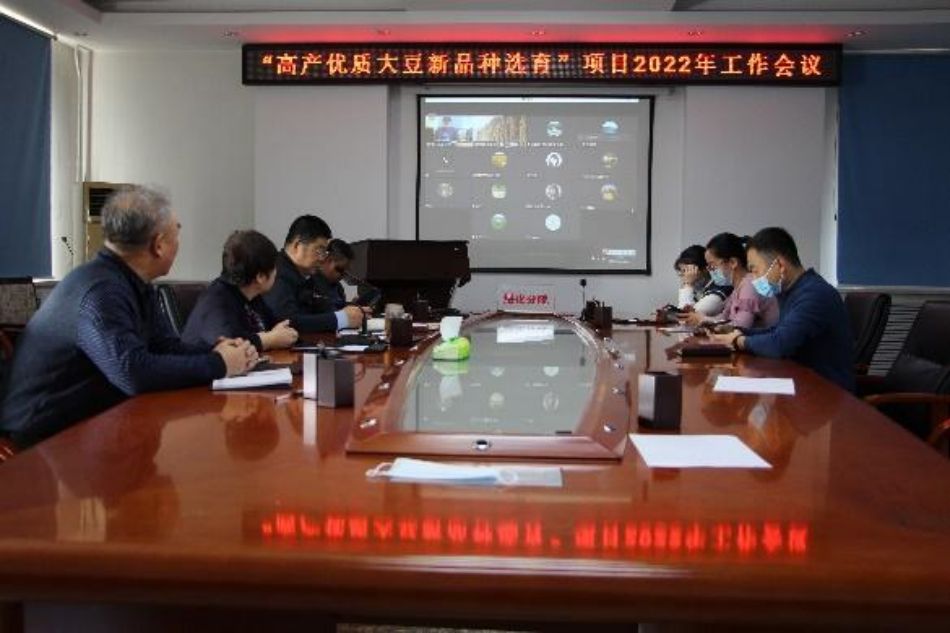 2022年3月10日,黑龙江省“百千万”工程生物育种科技重大专项—高产优质大豆新品种选育项目组以线上线下联动的形式召开工作推进研讨会,提早部署2022年项目收官之年的相关工作。来自成人网站 、东北农业大学、黑龙江省农垦科学院、尚志市益农种业等项目参加单位的20余位专家参加会议。