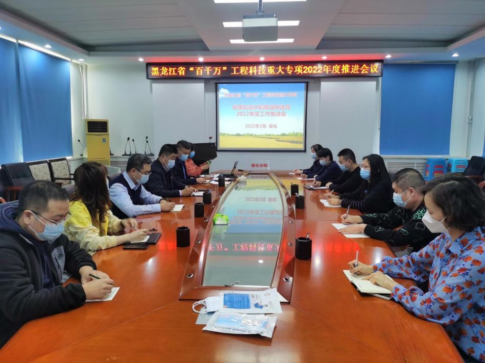 2022年3月18日上午,黑龙江省“百千万”工程重大科技专项“优质抗逆水稻新品种选育”项目组以线上线下联动的形式召开工作推进研讨会,提早部署2022年项目的攻关工作。
