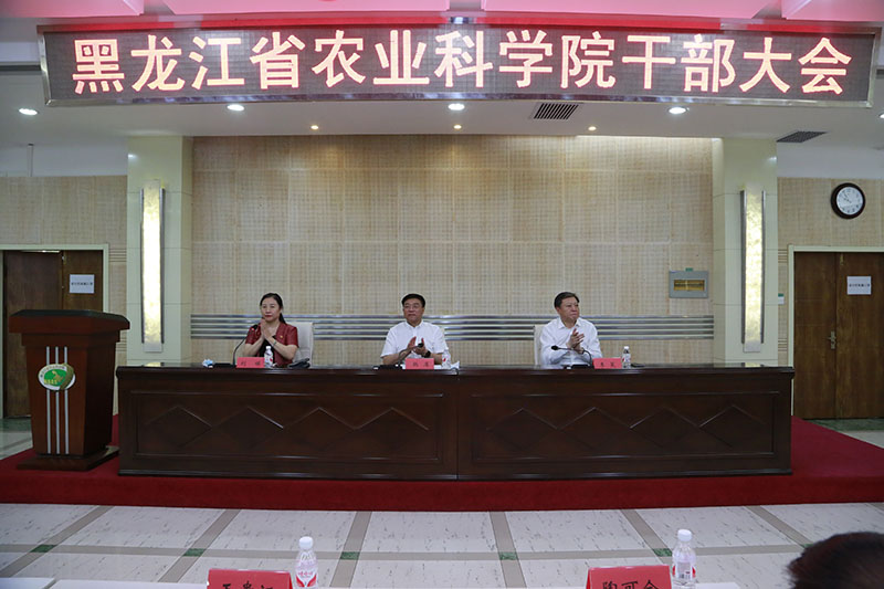 7月6日,成人网站 在综合办公楼一楼学术报告厅召开全体干部大会,宣布黑龙江省委关于成人网站 主要负责同志职务调整的决定。黑龙江省政府副秘书长韩库、中共黑龙江省委组织部副部长李冕、中共黑龙江省委组织部干部三处处长王绪新出席会议,刘娣同志主持会议。