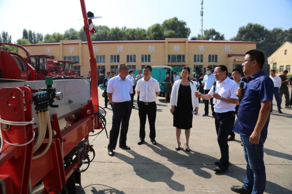 仪式结束后,项目研发小组还在仪式现场讲解、操作、演示了玉米收获机的多重功能,并带领大家参观了项目中试基地。
