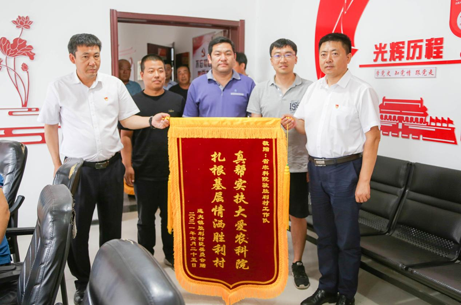 会上,远大镇胜利村民委员会和全体贫困户分别向第二批驻村工作队送上了锦旗,两批工作队进行了队旗交接。