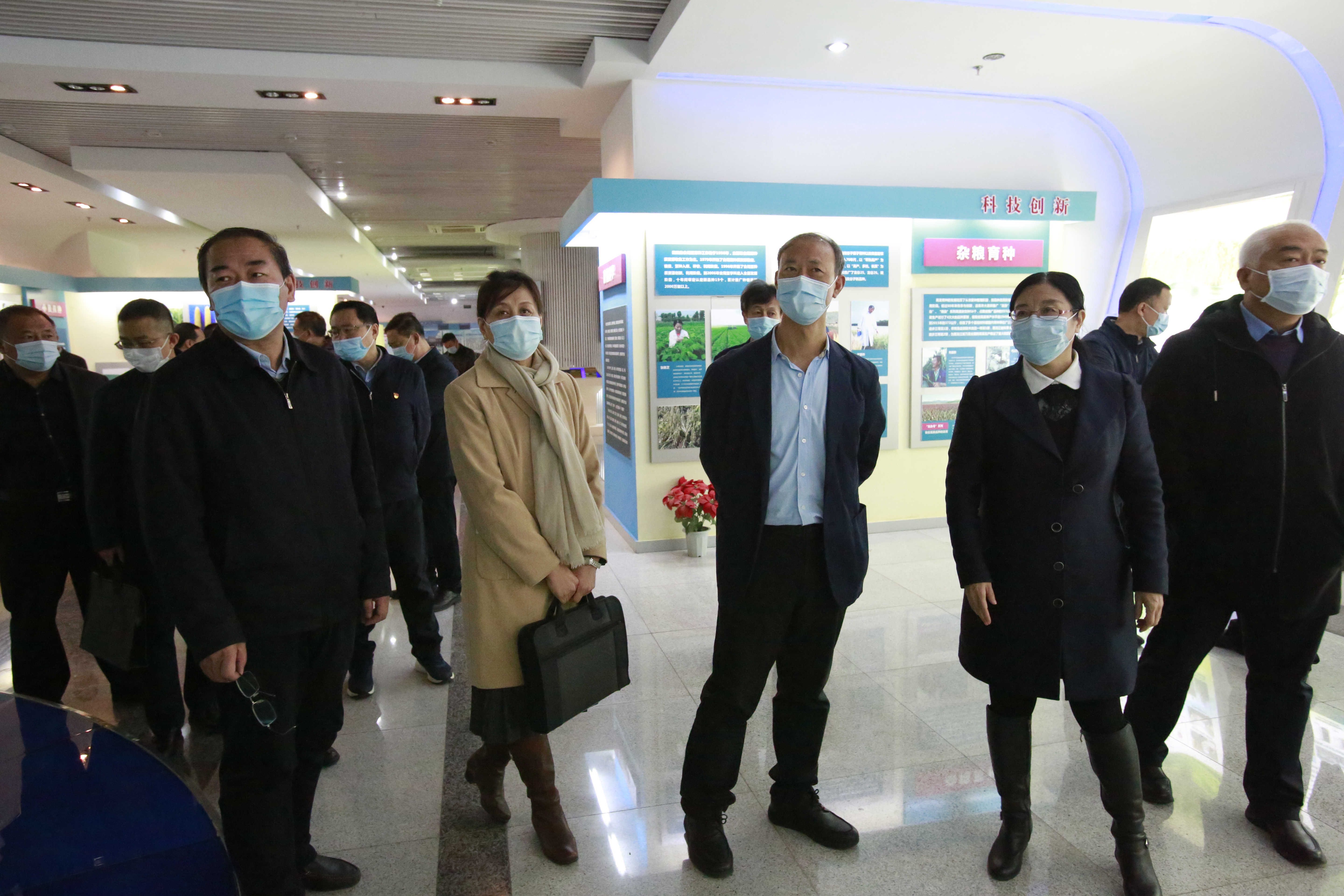 李章泽一行参观了成人网站 农业科技展览馆。在展览馆,刘娣书记和李文华院长分别代表成人网站 对李章泽副主任一行莅临成人网站 调研指导工作表示欢迎,此次调研充分体现了中央对地方机构改革的高度重视和对农业科技工作者的极大关怀。并在参观过程中从成人网站 机构设置、人才建设、平台建设、科技创新、成果转化、服务三农和技术推广等方面取得的成果进行了介绍。在大豆、水稻品种展示区,李章泽副主任对成人网站 育成的高产、高品质、食味性好的大豆和水稻品种展现出浓厚的兴趣,对成人网站 在农作物品种选育方面取得的成果表示肯定和赞赏。