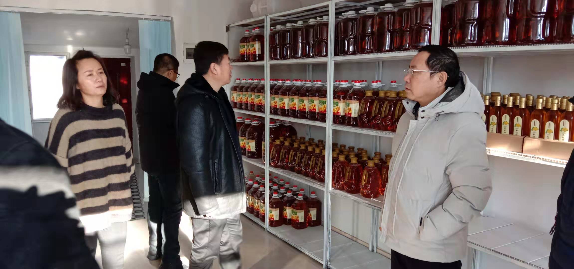 最后,石铁院长一行还对保卫村扶贫项目--笨榨油坊进行了考察与调研,并与油坊技术人员就笨榨油的品质与市场销量等相关技术进行了探讨交流。