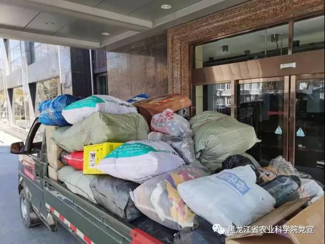 党组的大力支持下,在院机关党委、院科技推广处、驻胜利村工作队的倡议和组织下,在哈内各单位开展以““衣旧”情深 为爱加温”为主题的爱心捐赠活动,广大干部职工积极参与,纷纷捐出自己的闲置冬季衣物。据统计,全院职工共捐出闲置冬季衣物1000余件,为绥化市兰西县远大镇胜利村的贫困家庭送去温暖。