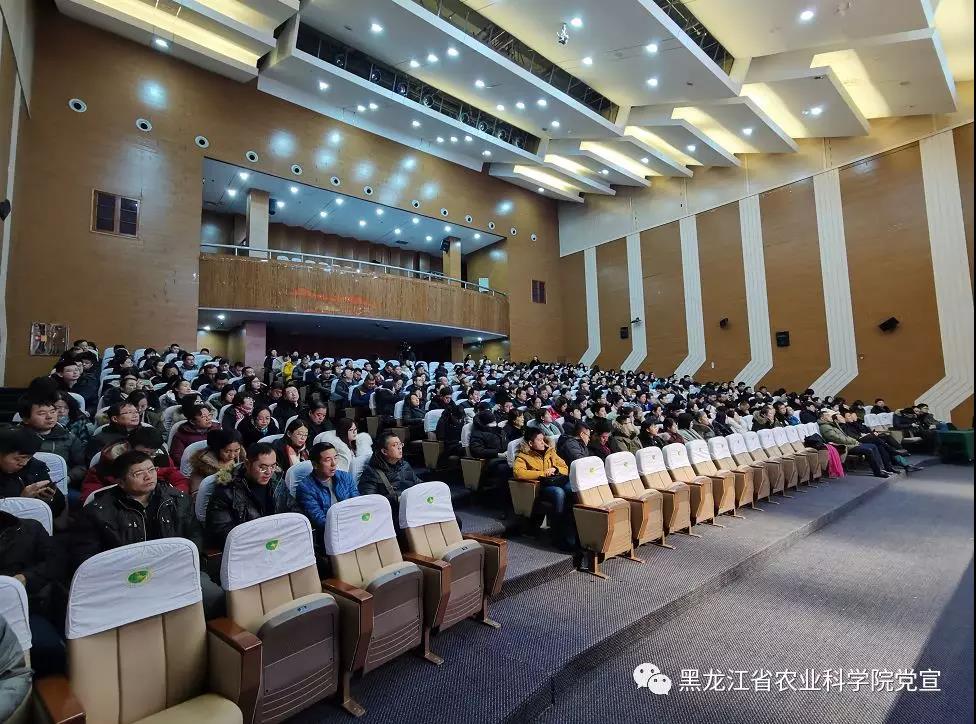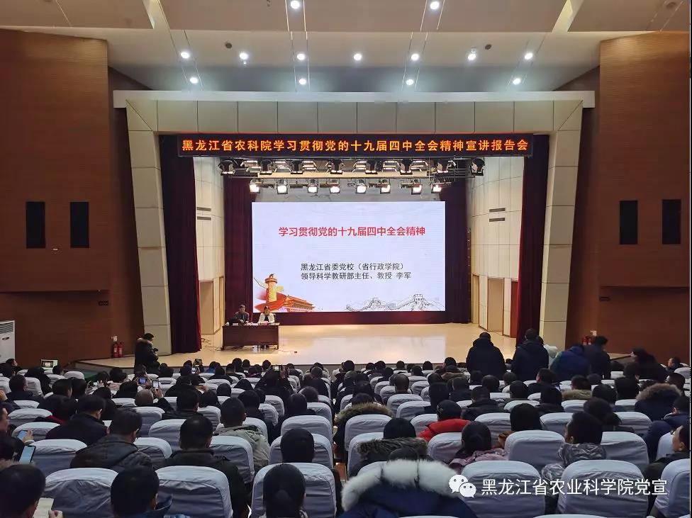 2019年12月11日,学习贯彻党的十九届四中全会精神宣讲报告会在黑龙江成人网站 举行。省委宣讲团成员、省委党校李军教授作宣讲报告。黑龙江成人网站 党组书记刘娣主持报告会,院领导班子成员、哈内各党委、党支部党员干部及科研人员参加会议,哈外各单位设直播分会场,共计1200余名党员干部参加学习。