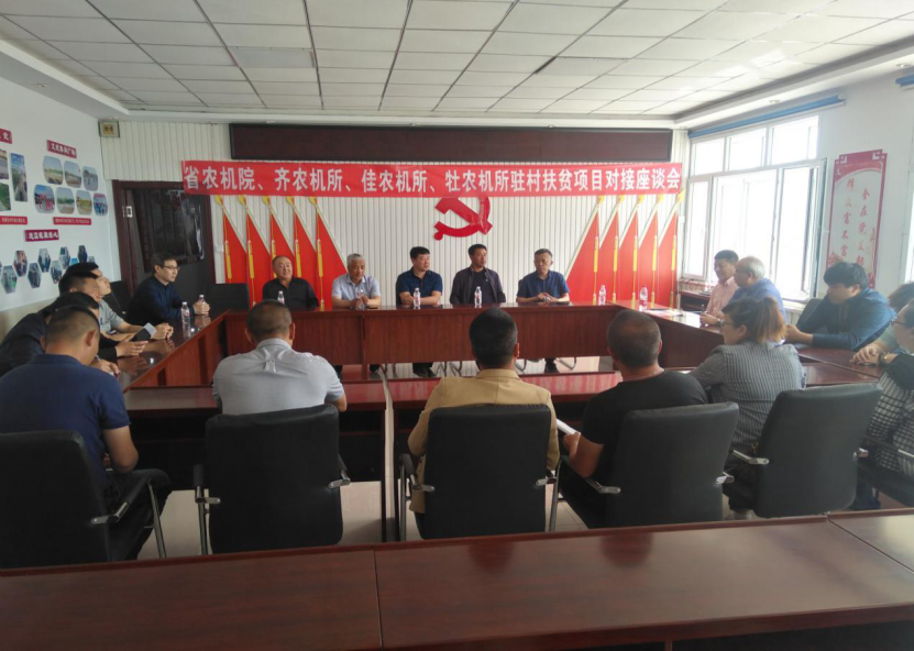 随后,在省农机院副院长刘庆余主持下,院属各所领导与北兴镇驻村扶贫项目负责人进行对接、座谈交流,各科研院所分别介绍本单位主要研究方向,同时对当前保卫村、公平村遇到相关技术问题进行交流与讨论。