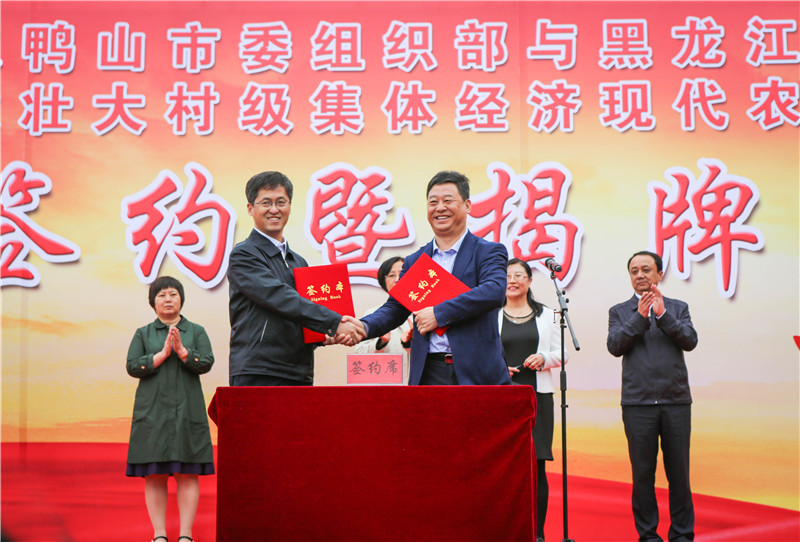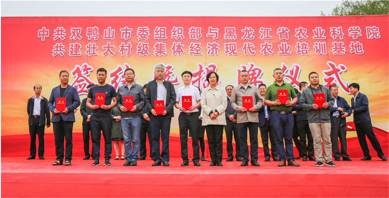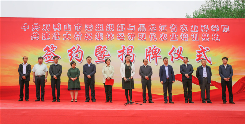 6月14日,成人网站 与双鸭山市委组织部共建壮大村级集体经济现代农业培训基地签约及揭牌仪式在双鸭山市尖山区举行。成人网站 党组书记刘娣、总农艺师闫文义,双鸭山市委副书记张云凯、市政府副市长冯海军、市委组织部常务副部长董永江出席签约仪式。双鸭山市委组织部部长张春姣主持签约仪式。